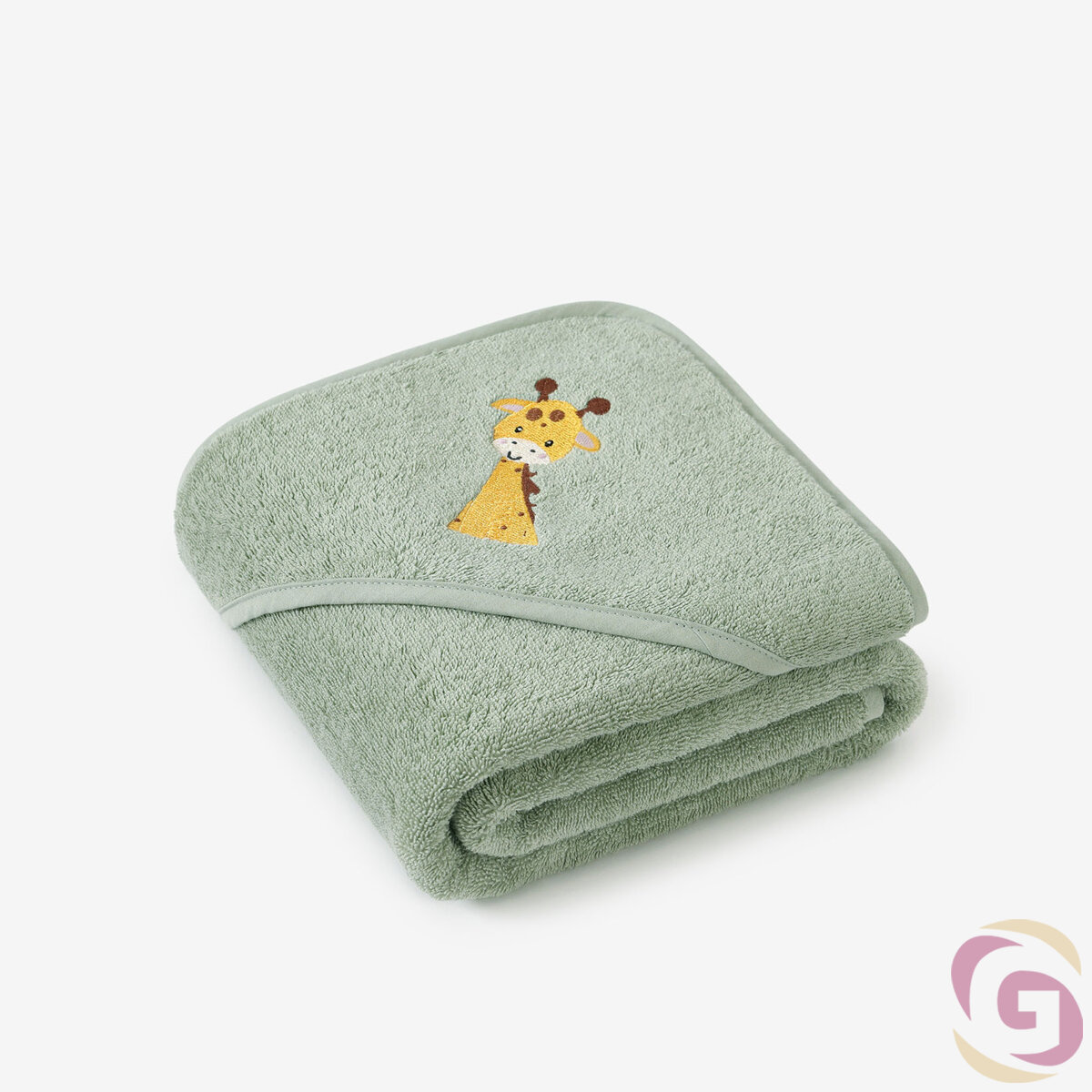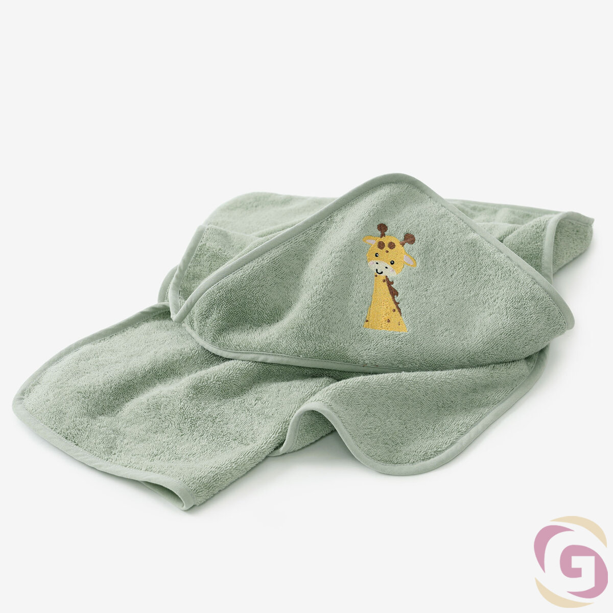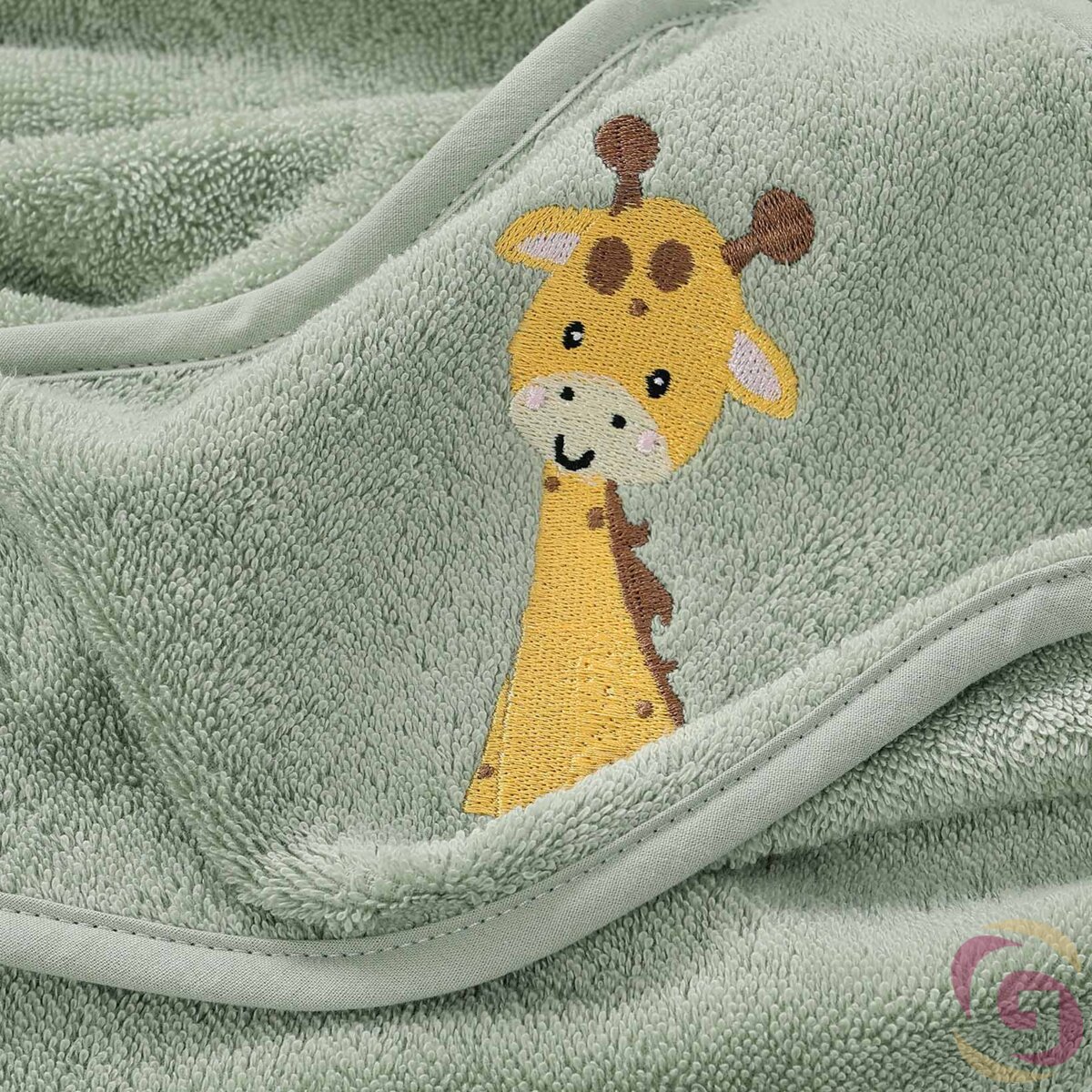 Frottee Babybadetuch mit Kapuze - Giraffe auf Salbei