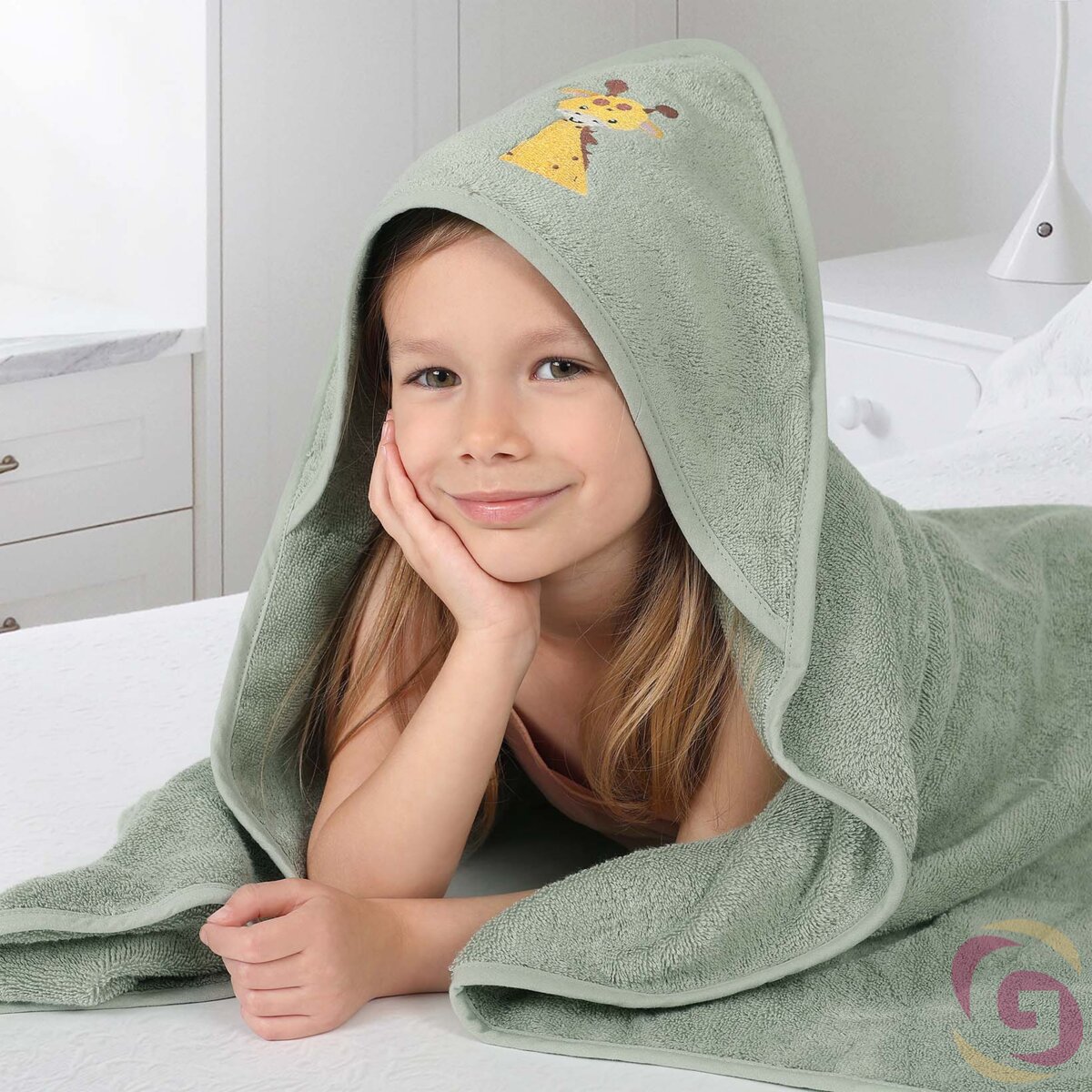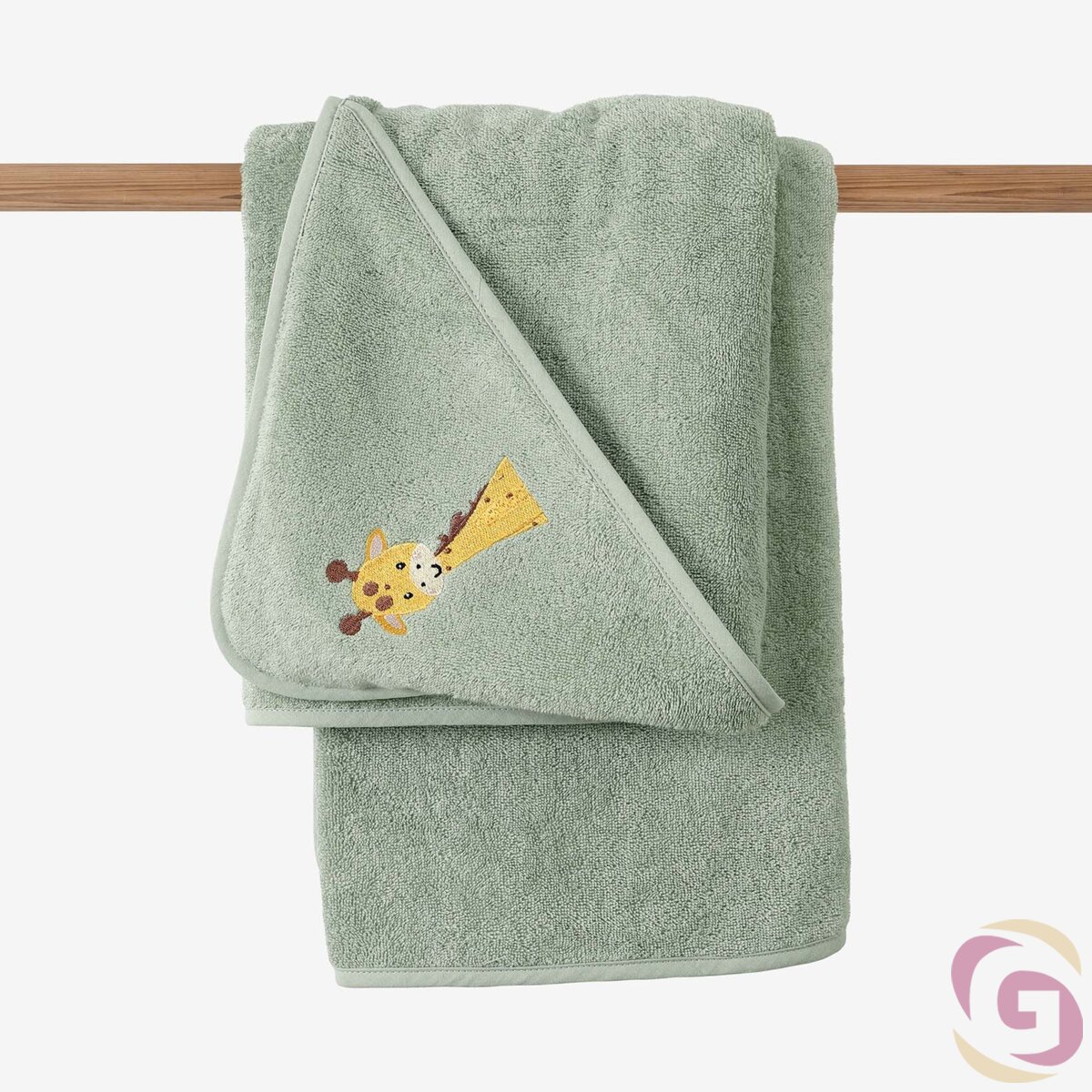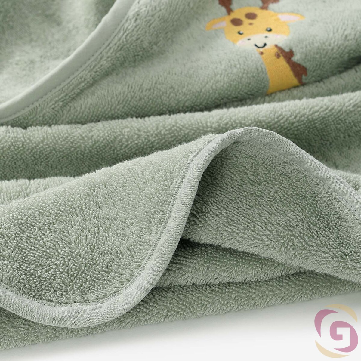 Frottee Babybadetuch mit Kapuze - Giraffe auf Salbei