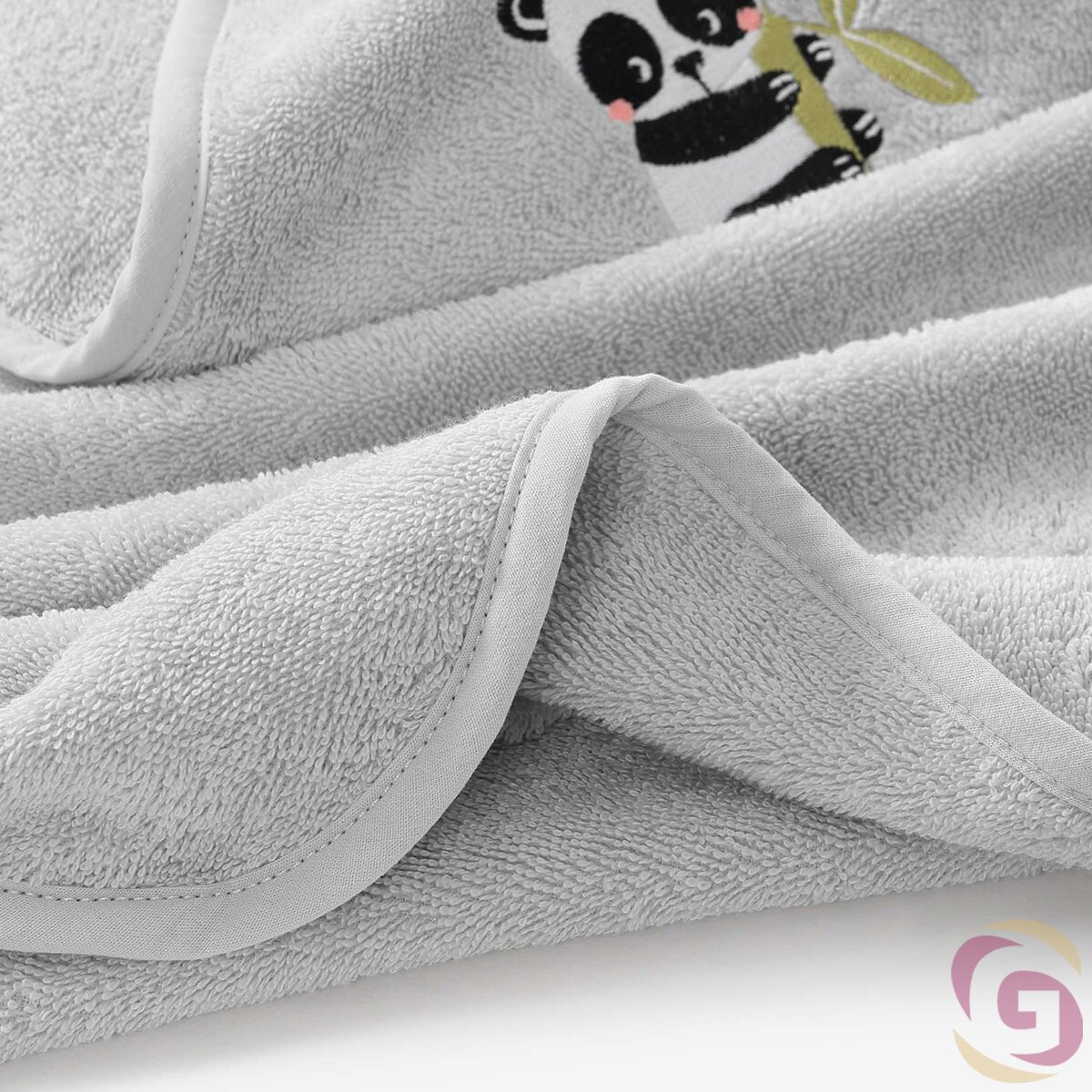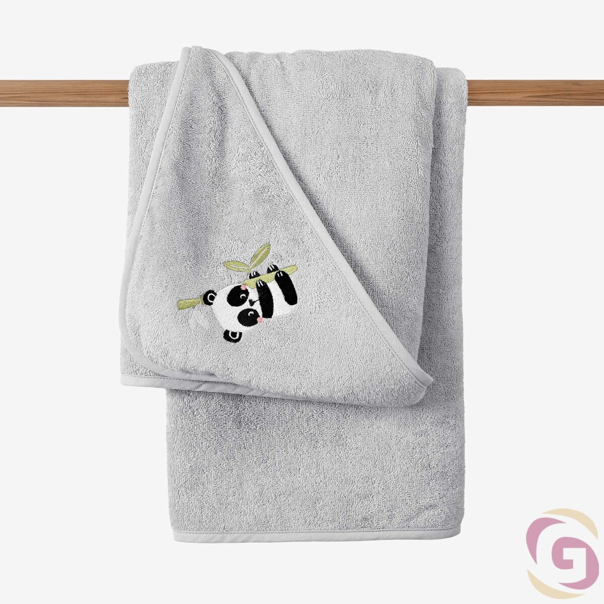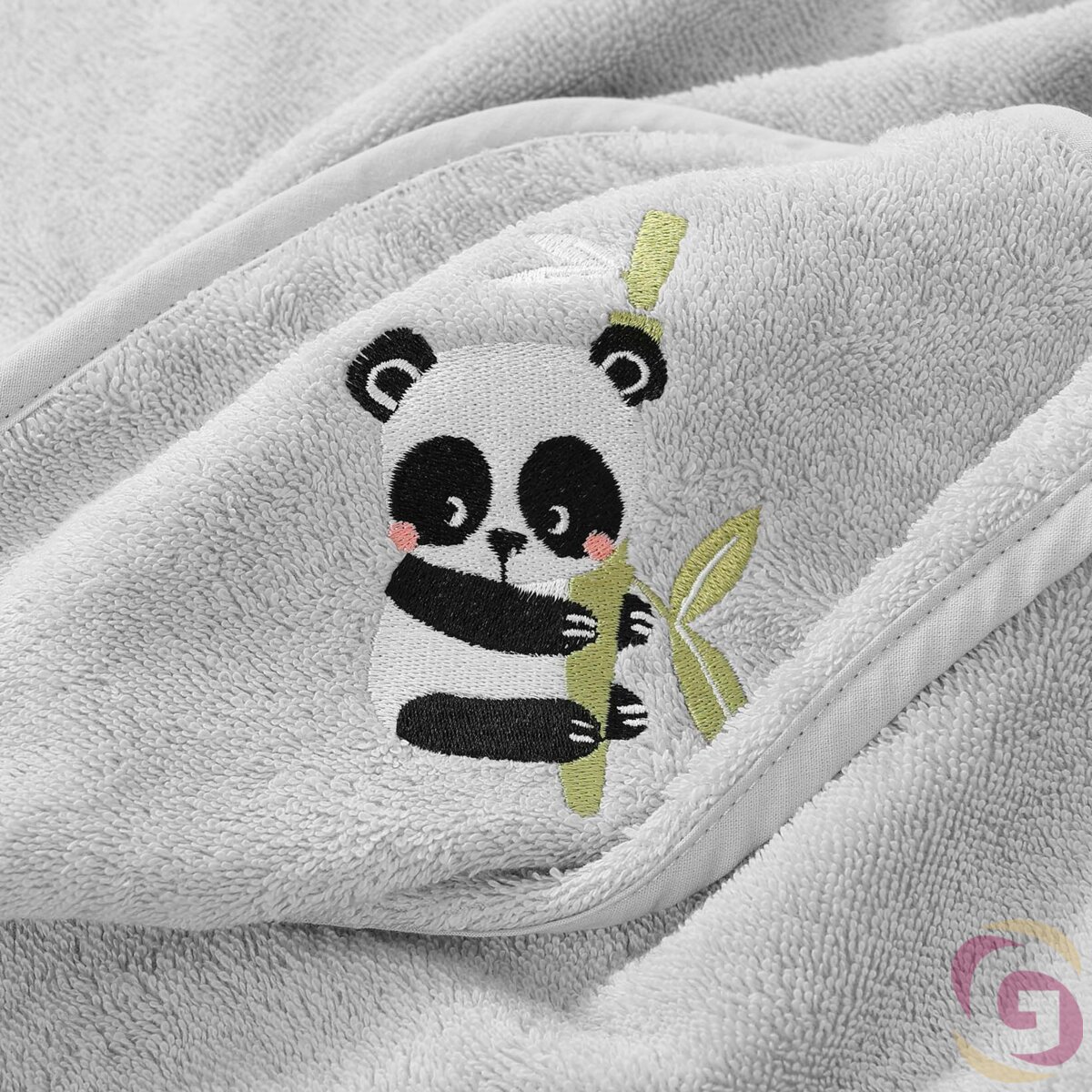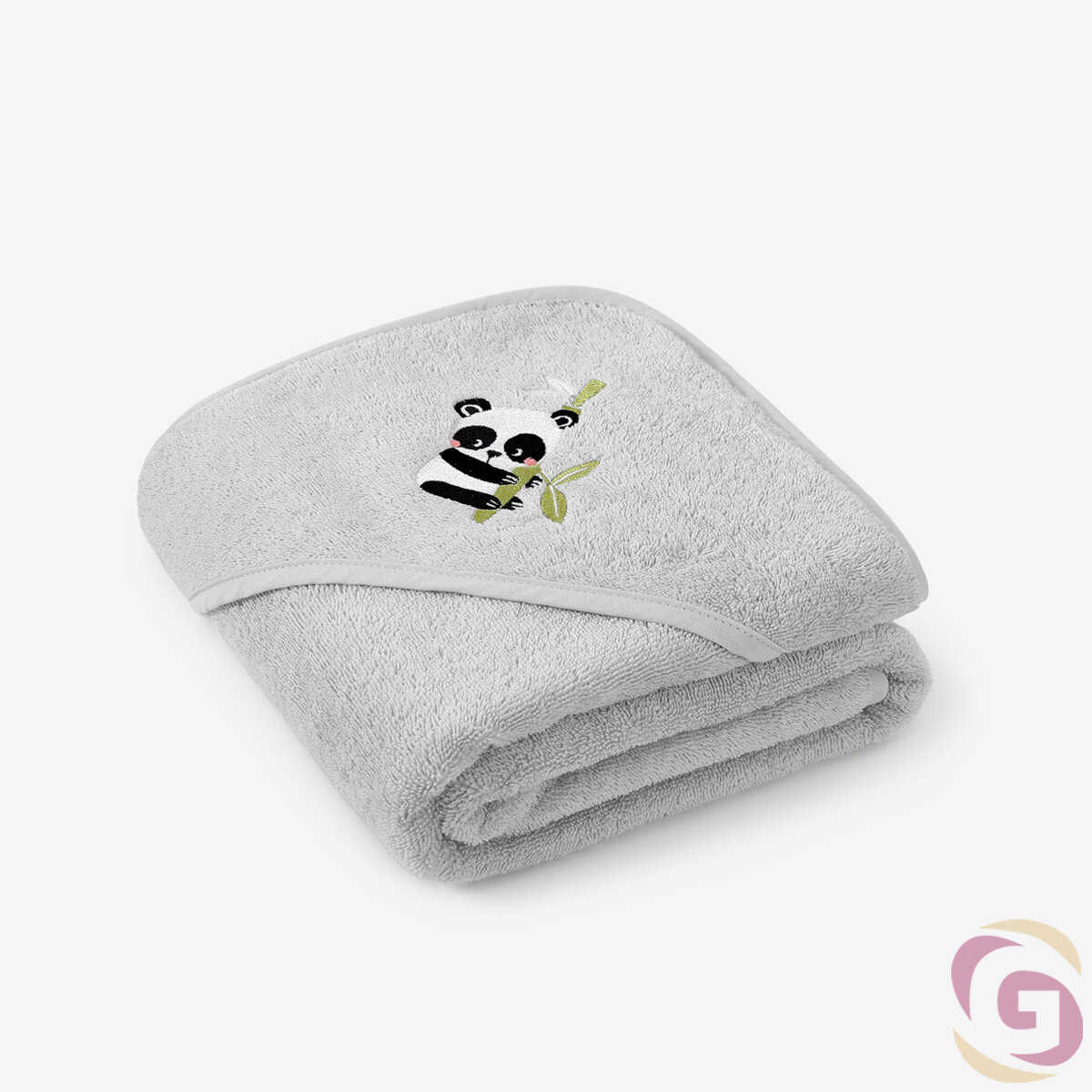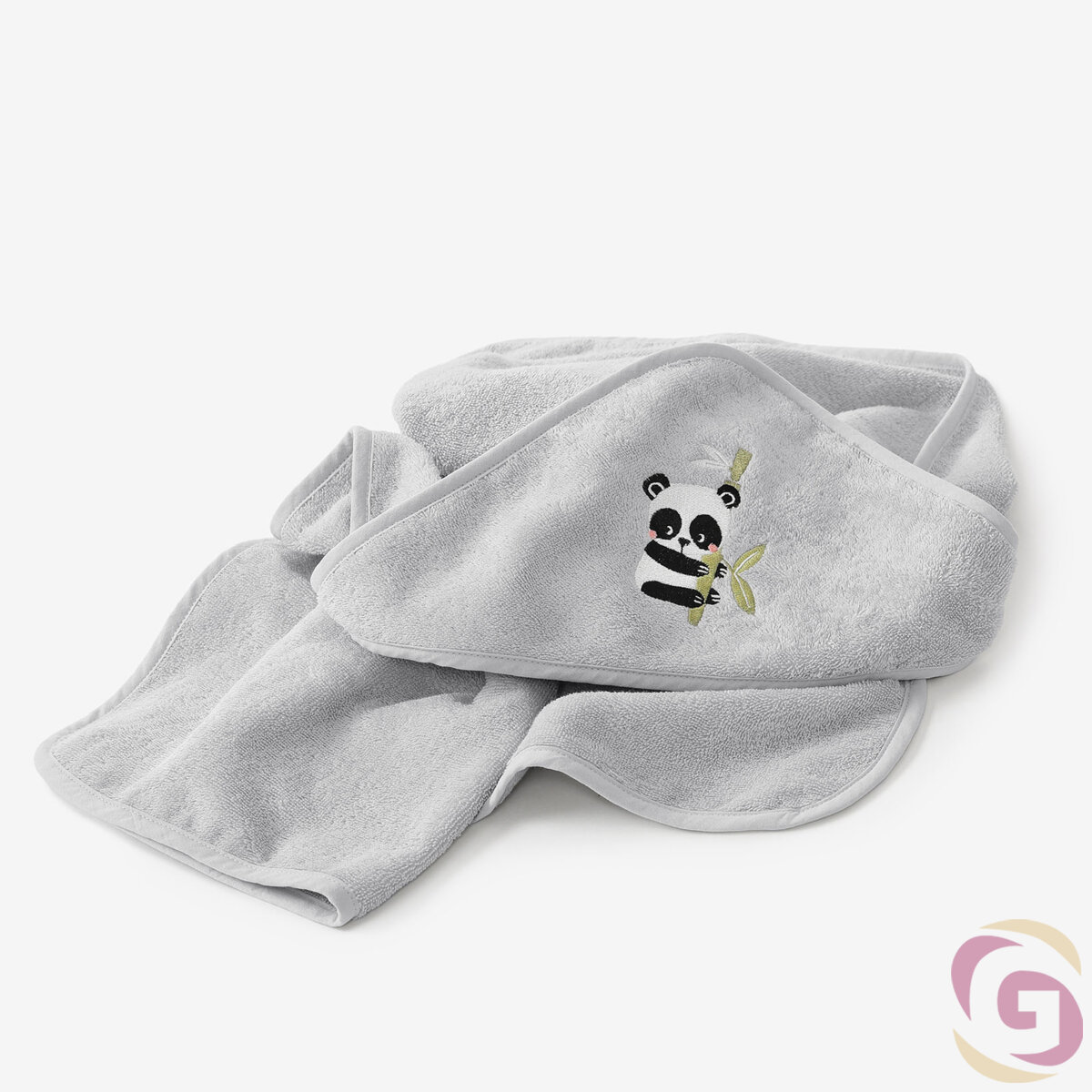 Frottee Babybadetuch mit Kapuze - Panda auf Hellgrau