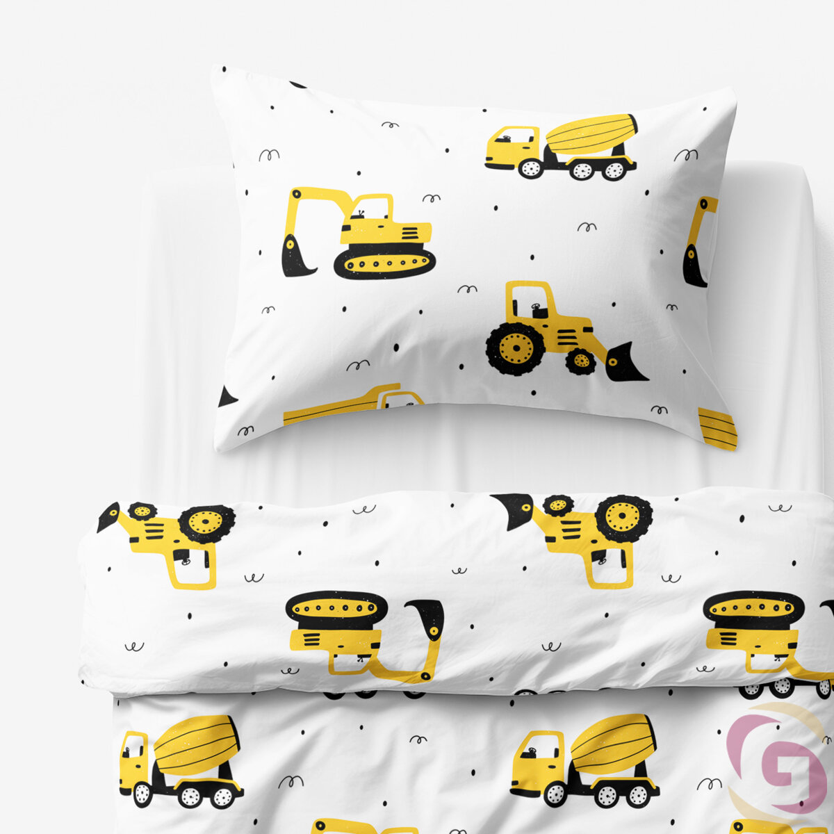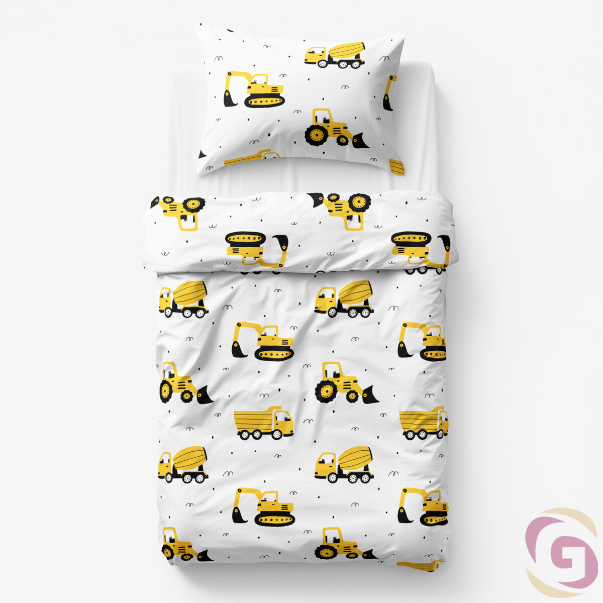 Bettwäsche für Babybetten aus Baumwolle - Bagger und Baufahrzeuge