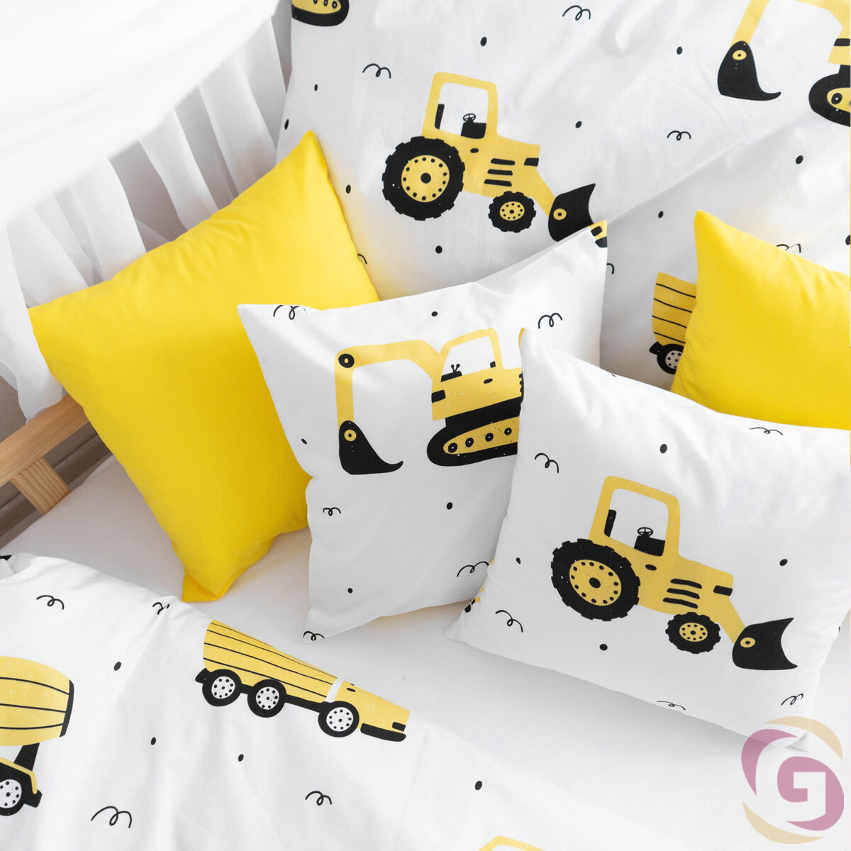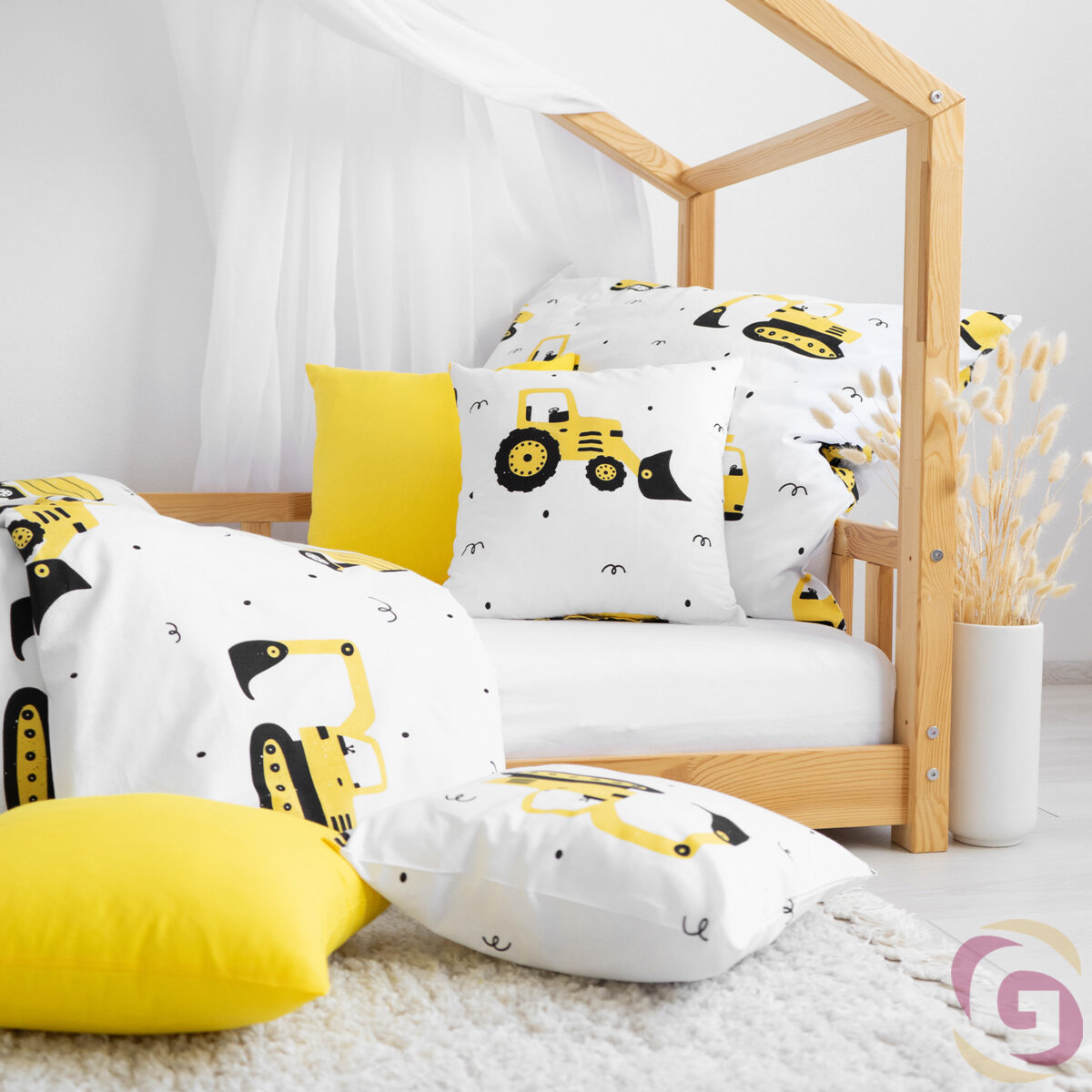 Kinder-Kissenbezug aus Baumwolle - Bagger und Baufahrzeuge
