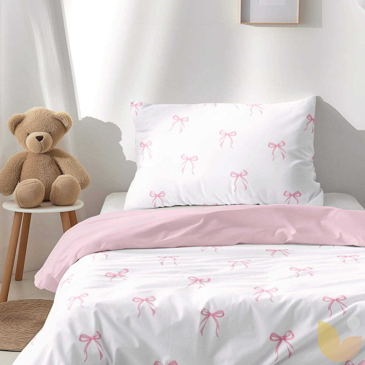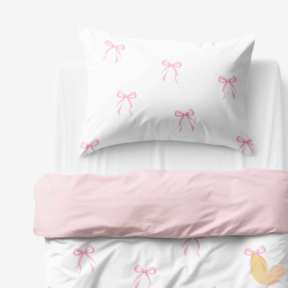 Kinder-Bettwäsche aus Baumwolle Duo - rosa Schleifen mit Puderrosa
