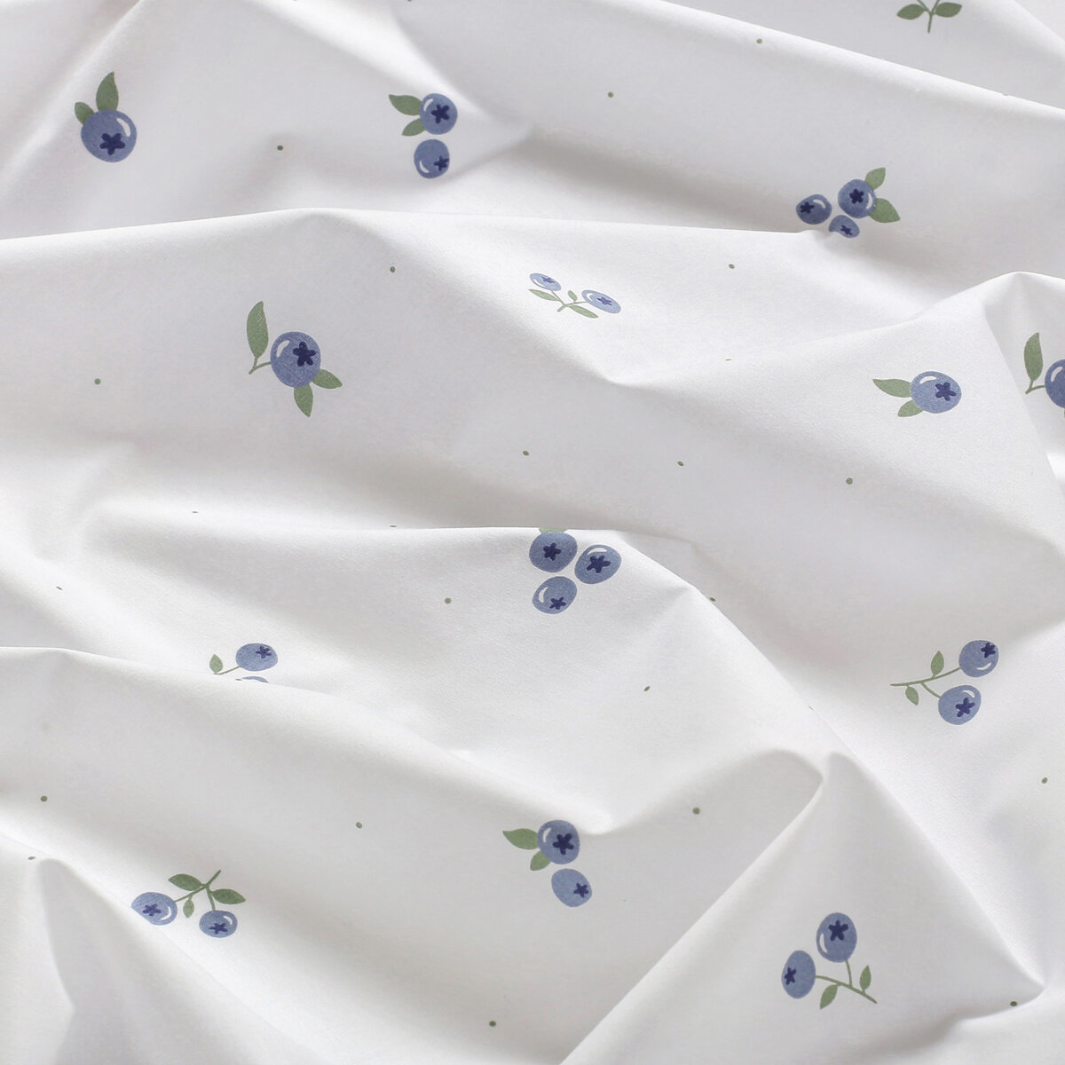 Die Bettwäsche für Babybetten mit einem Heidelbeeren mit Punkten auf weißem Hintergrund bringt eine frische Atmosphäre ins Kinderzimmer. Die Bettwäsche ist aus glatter 100%iger Baumwolle mit einem Gewicht von 145 g/m2 hergestellt.
