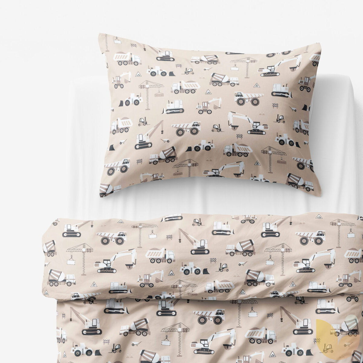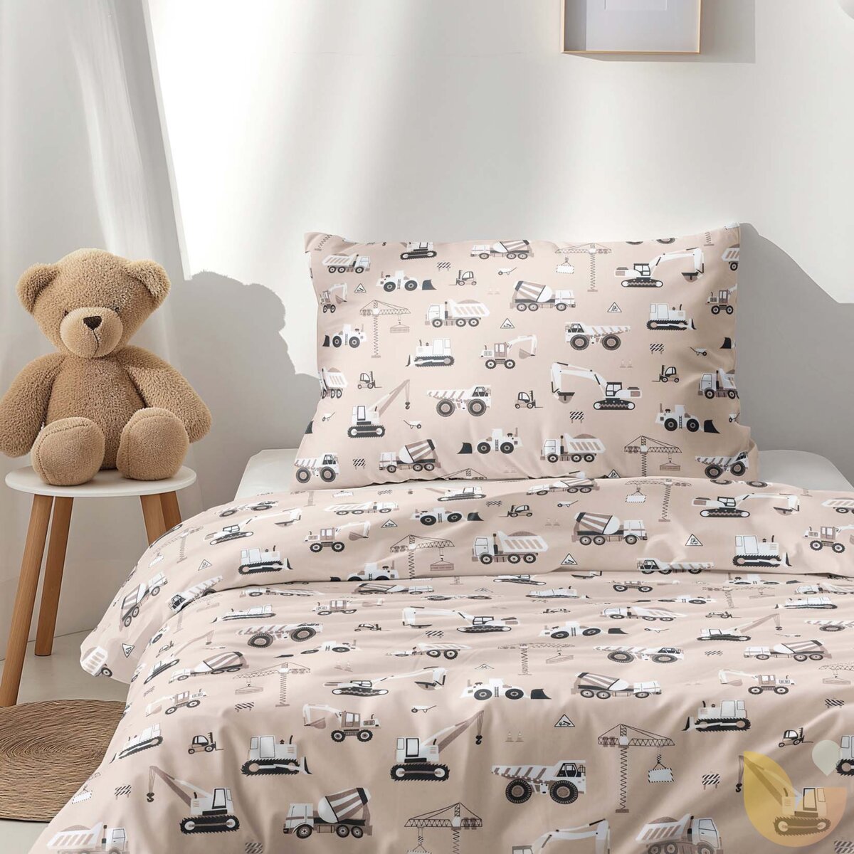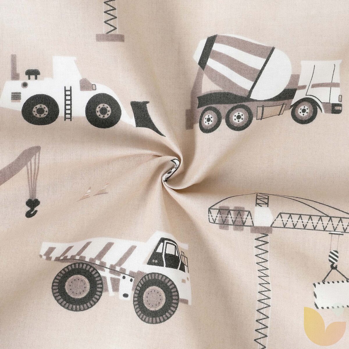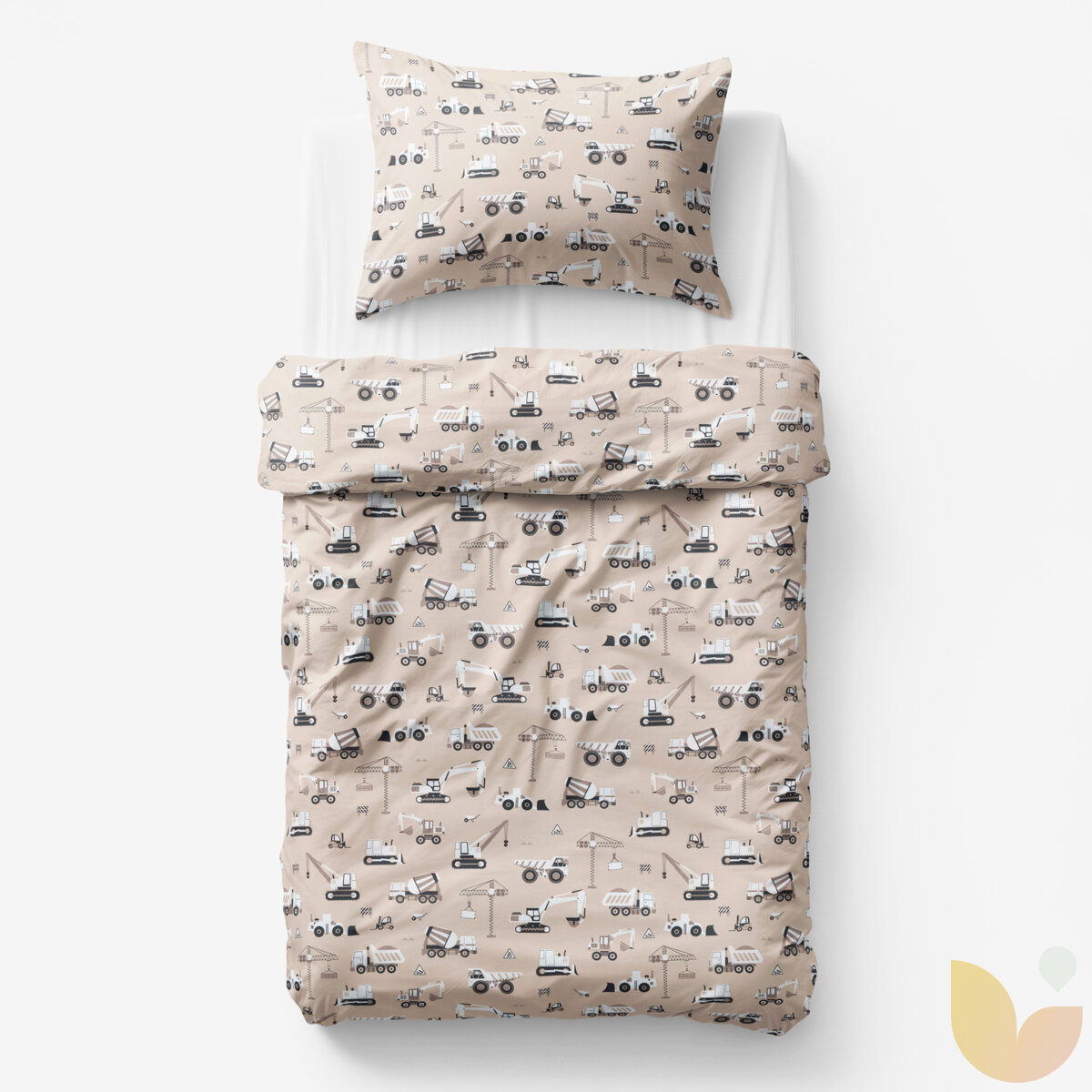 Kinder - Bettwäsche aus Baumwolle - Lastwagen und Bagger auf Beige