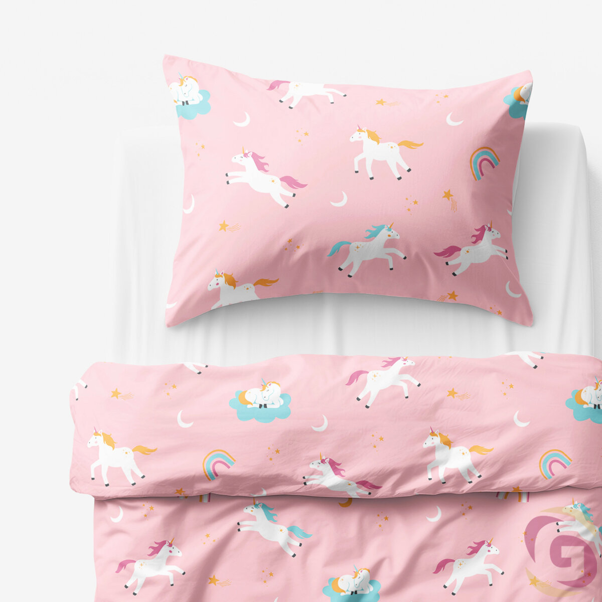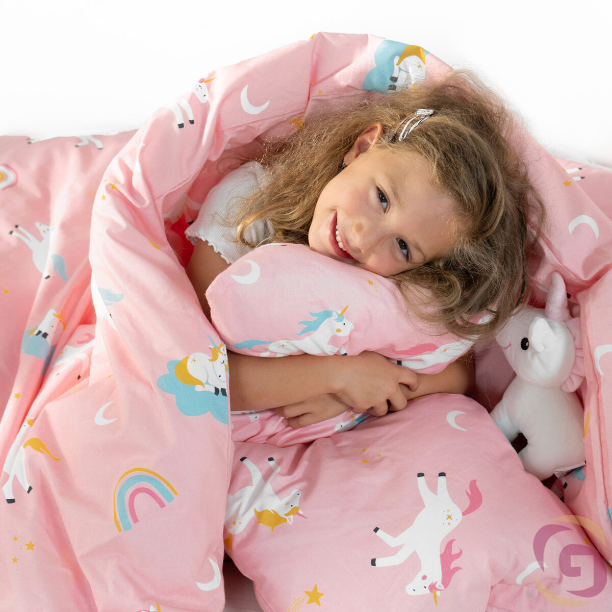 Kinder-Kissenbezug aus Baumwolle - Lustige Einhörner