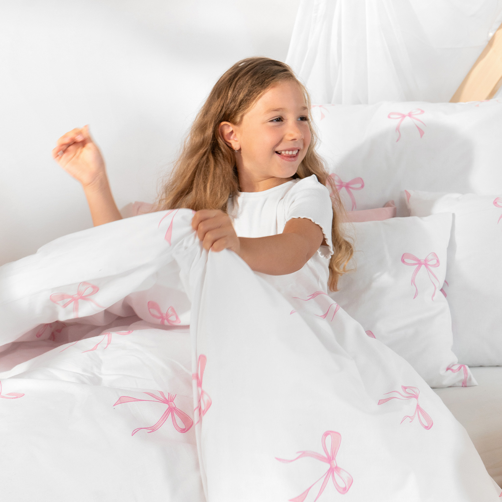 Kinder - Bettwäsche aus Baumwolle - rosa Schleifen