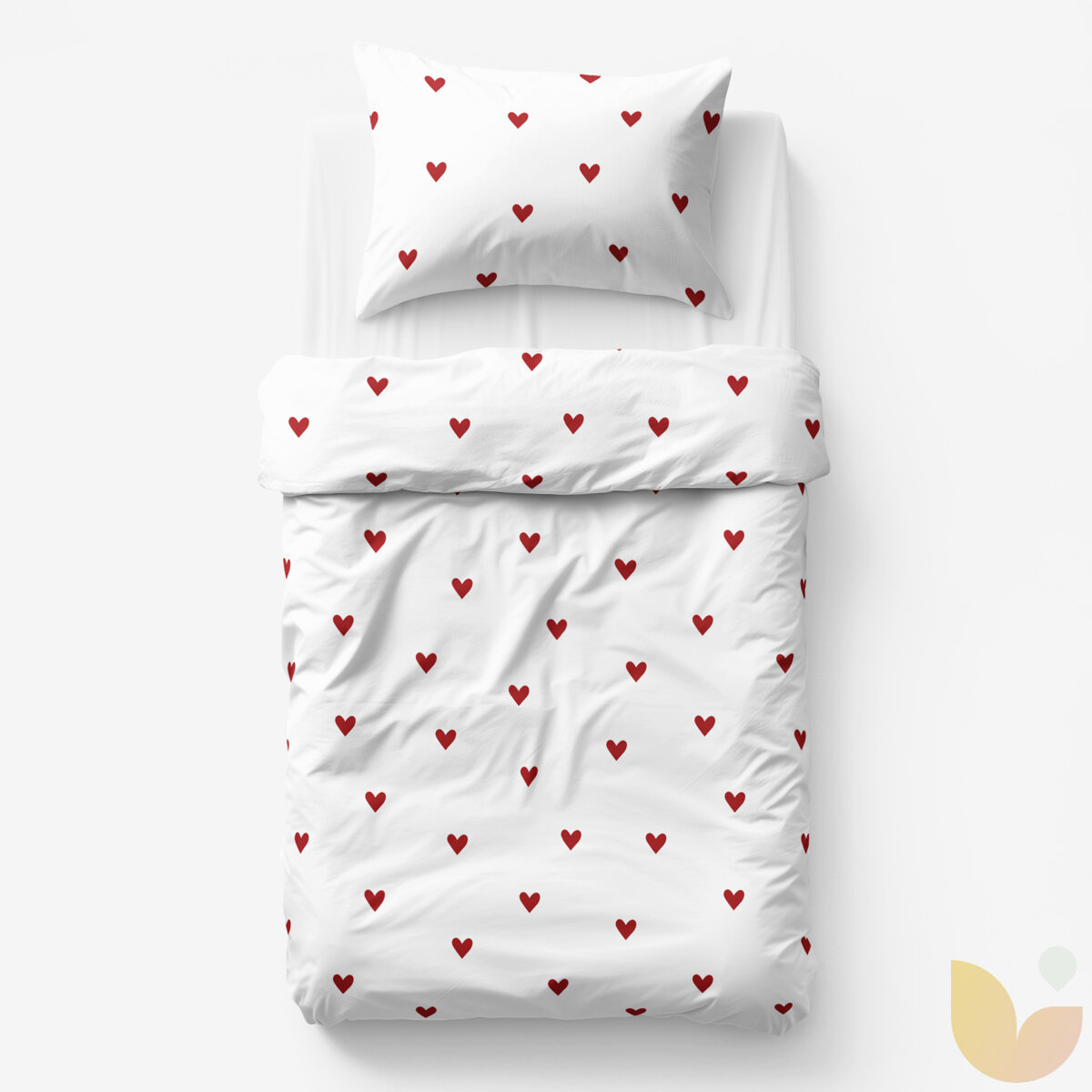 Kinder - Bettwäsche aus Baumwolle - Rote Herzchen auf Weiß