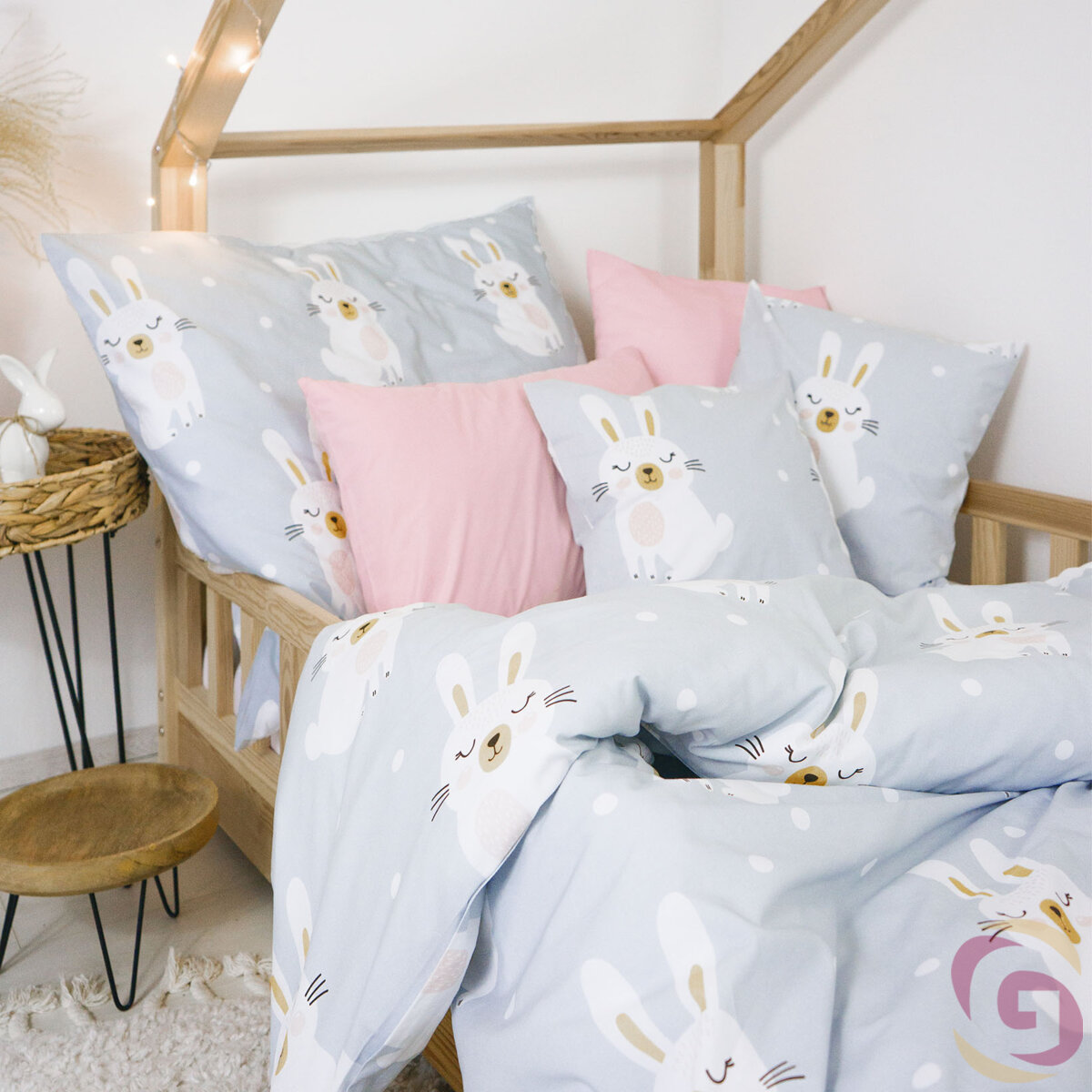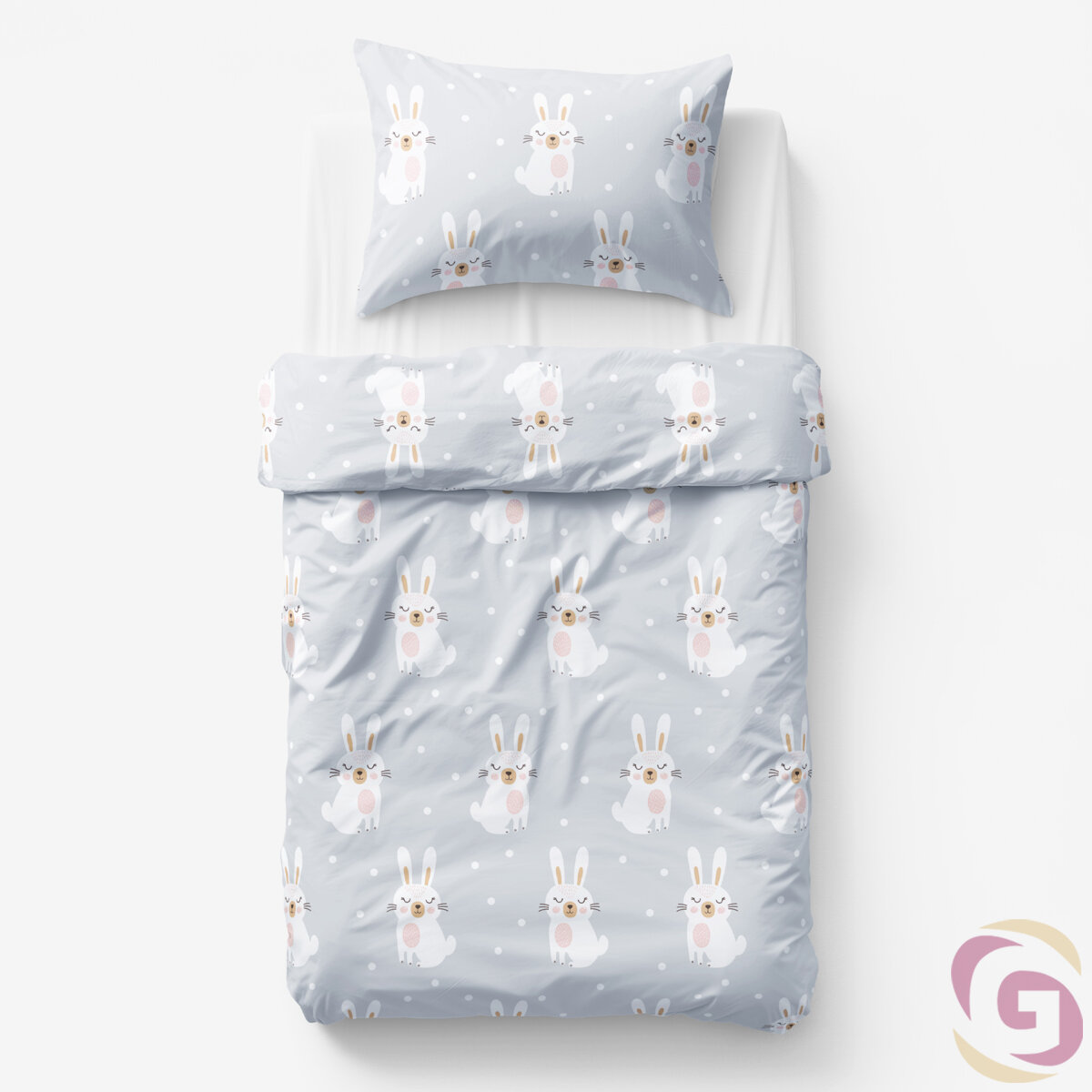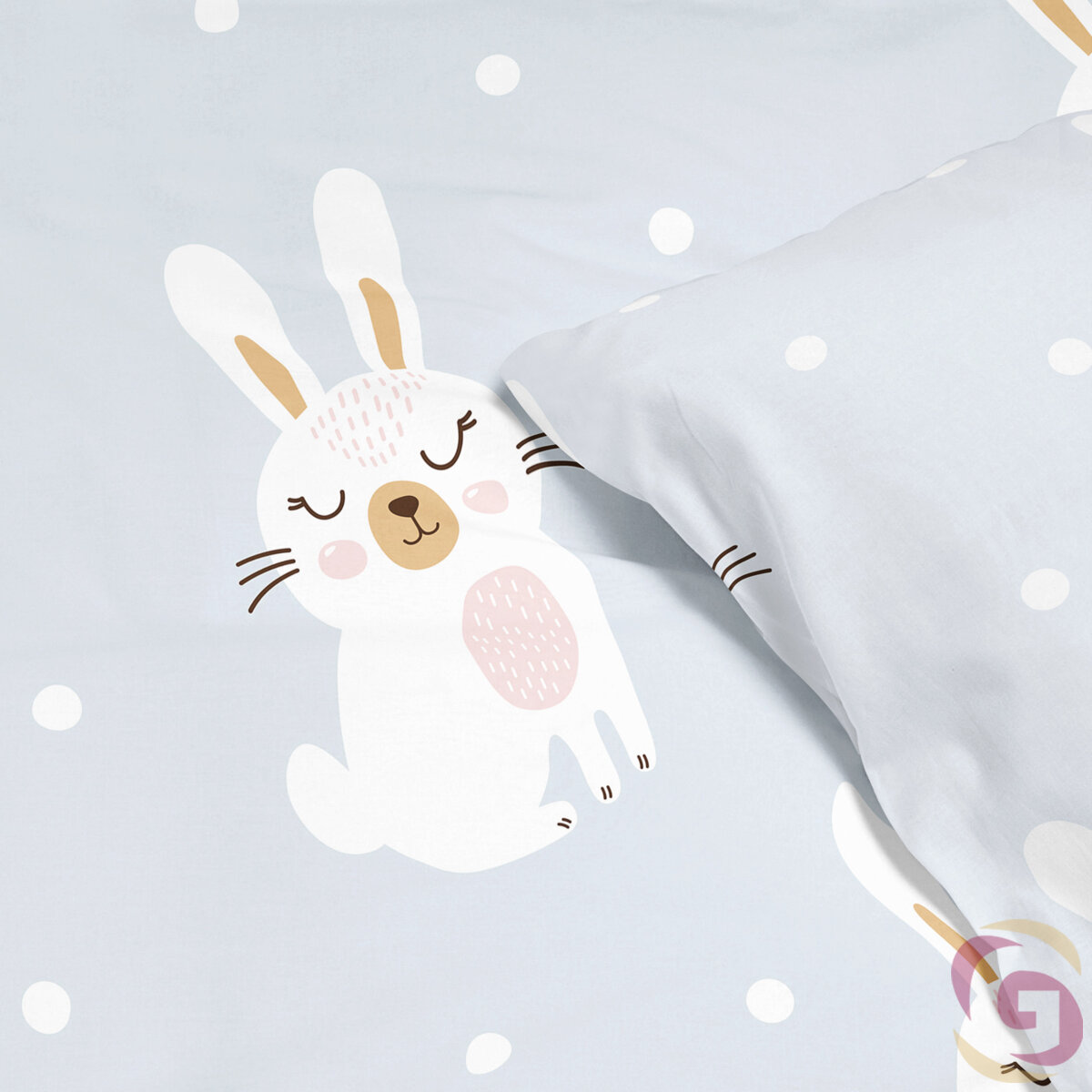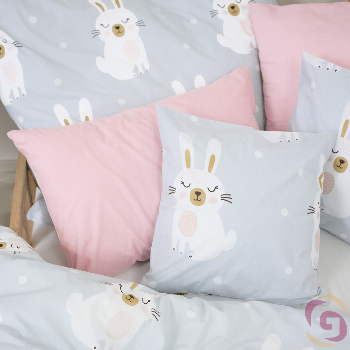 Bettwäsche für Babybetten aus Baumwolle Duo - verträumte Kaninchen mit Puderrosa