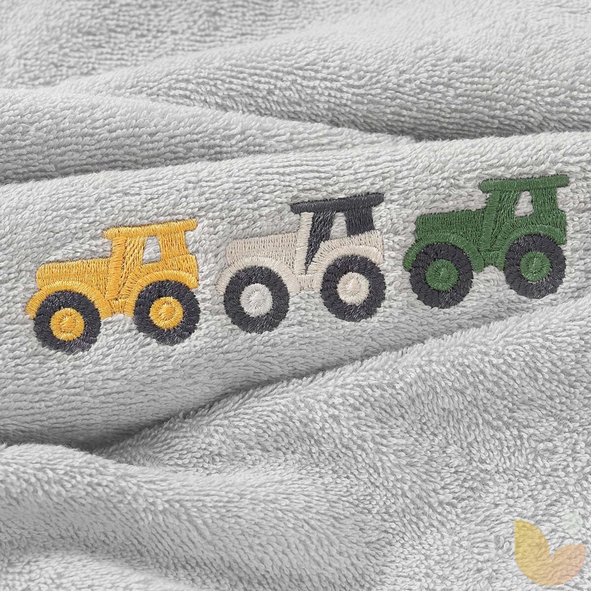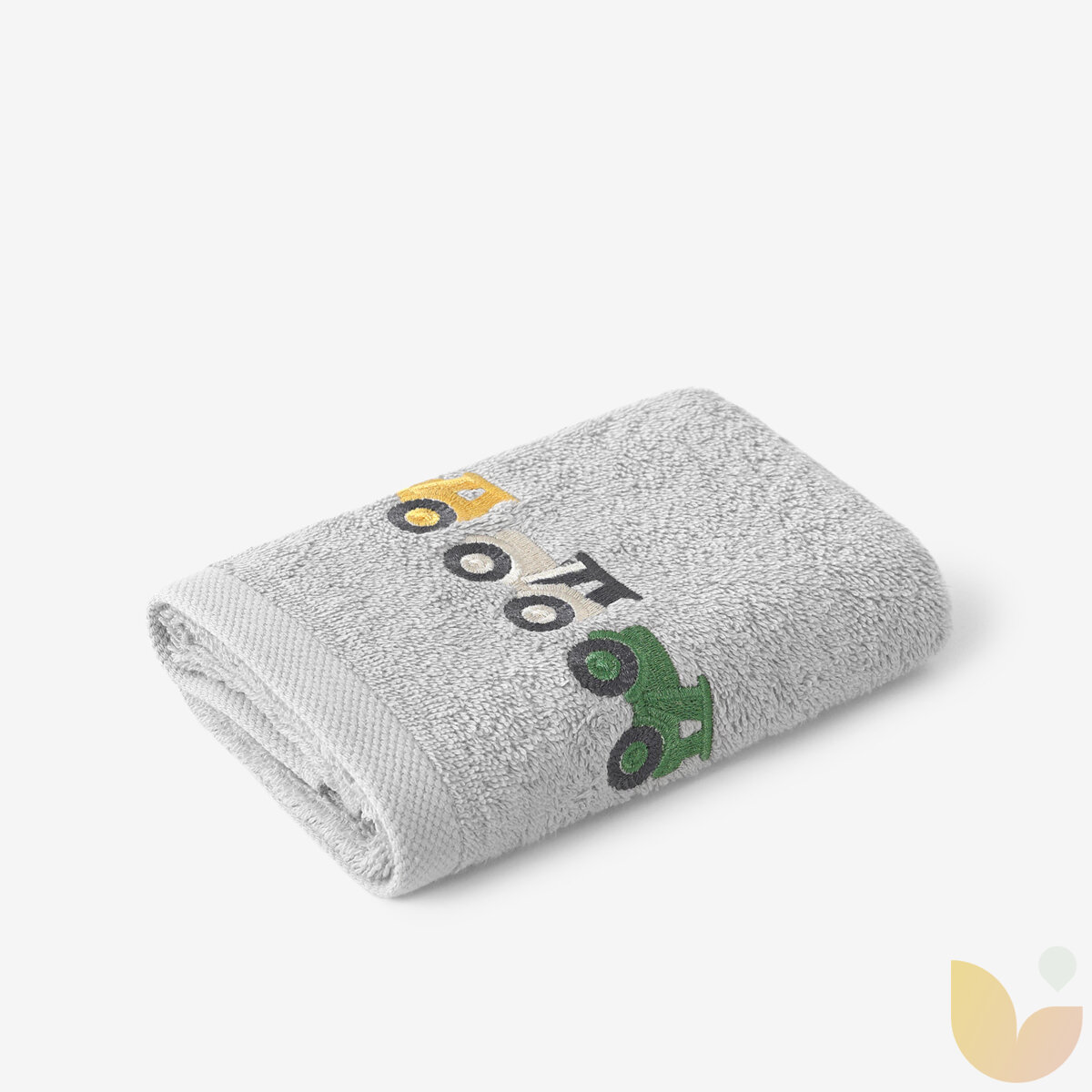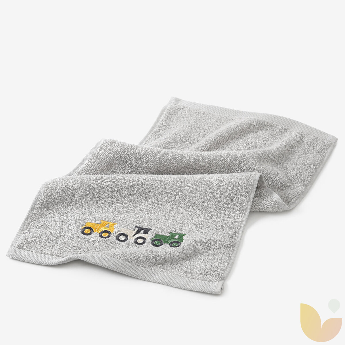 Kinder-Frottierhandtuch - Bunte Traktoren auf Grau