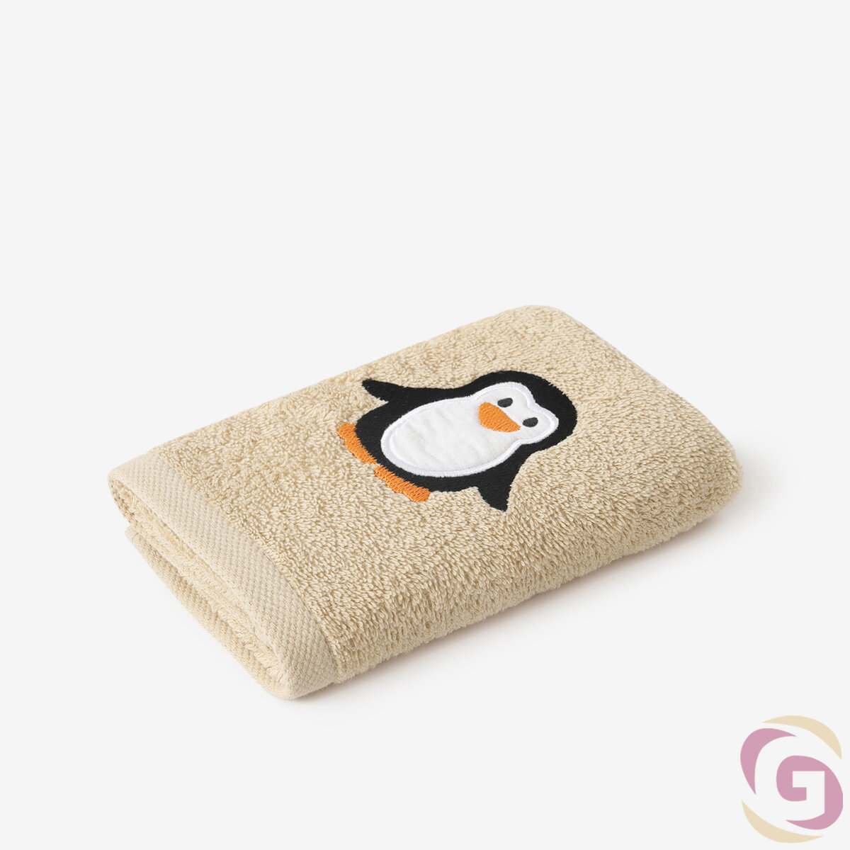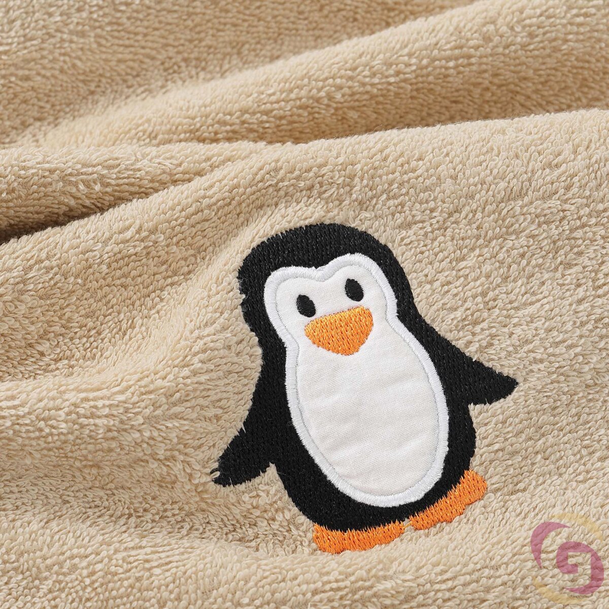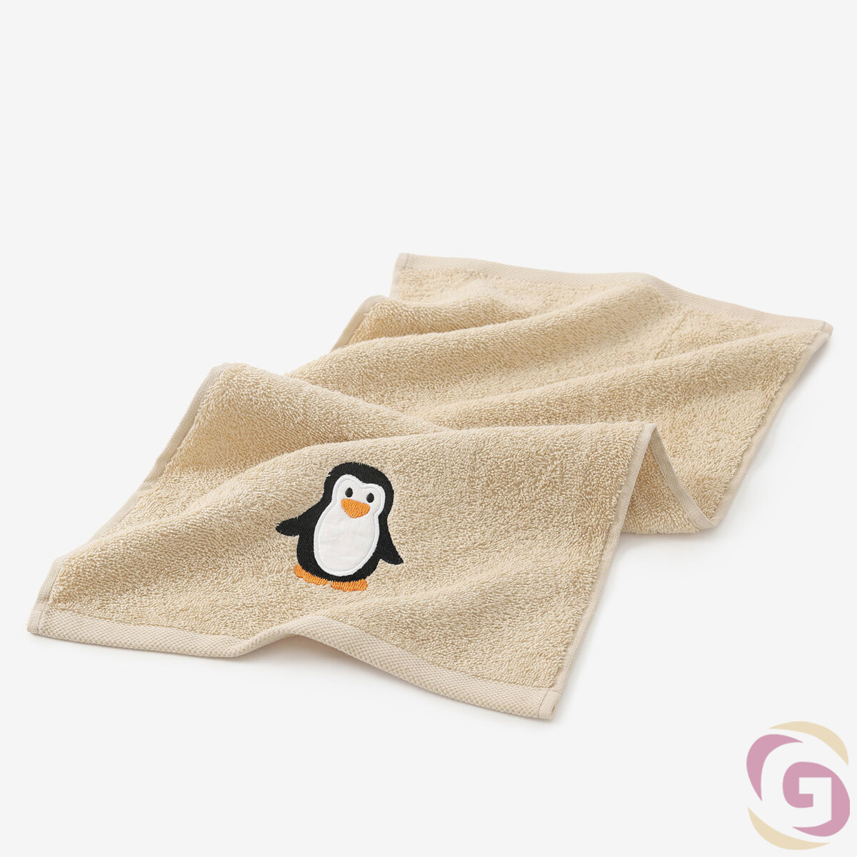 Kinder-Frottierhandtuch - Pinguin auf Beige