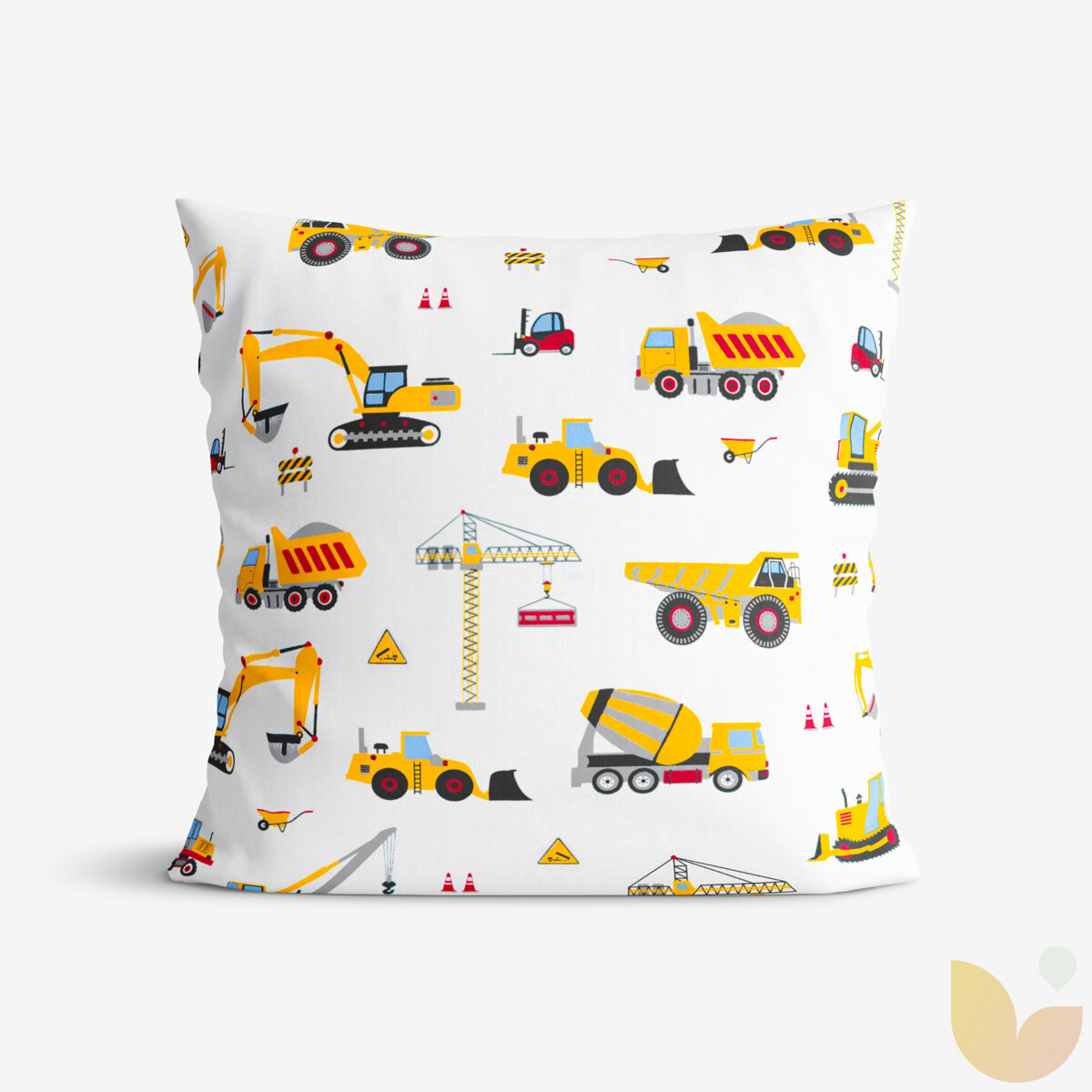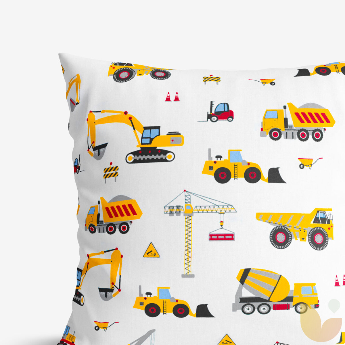 Kinder-Kissenbezug aus Baumwolle - Lastwagen und Bagger