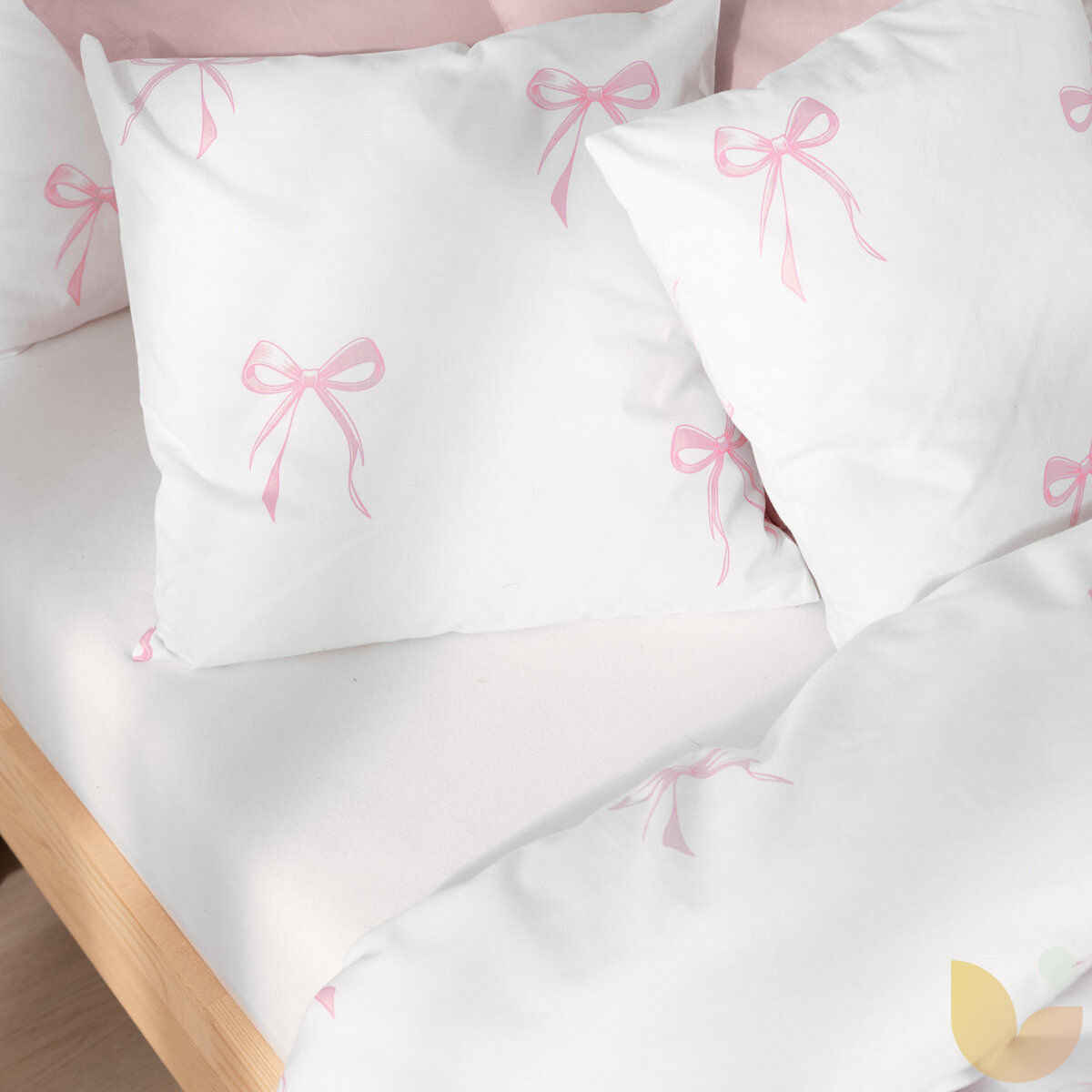 Kinder-Bettwäsche aus Baumwolle Duo - rosa Schleifen mit Puderrosa