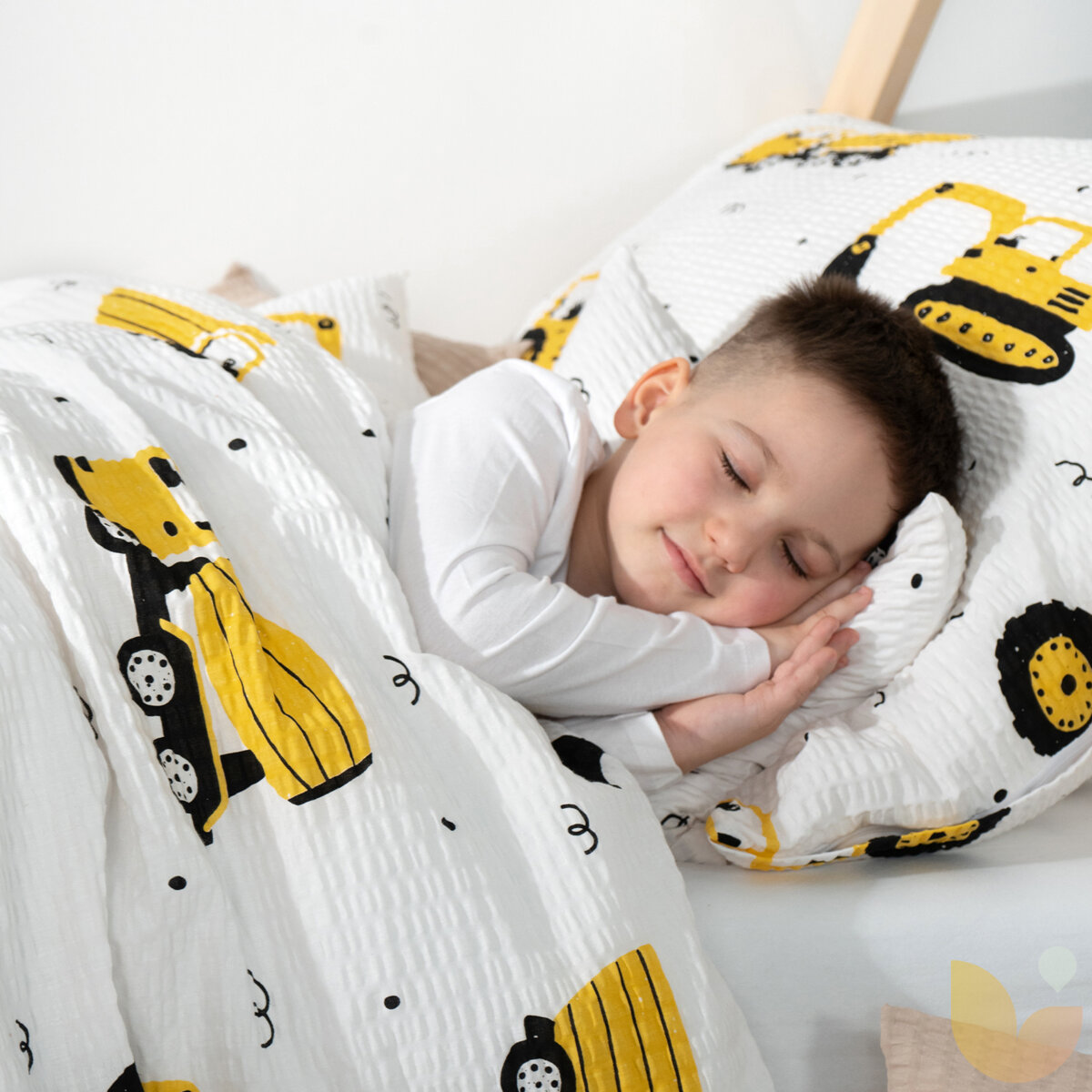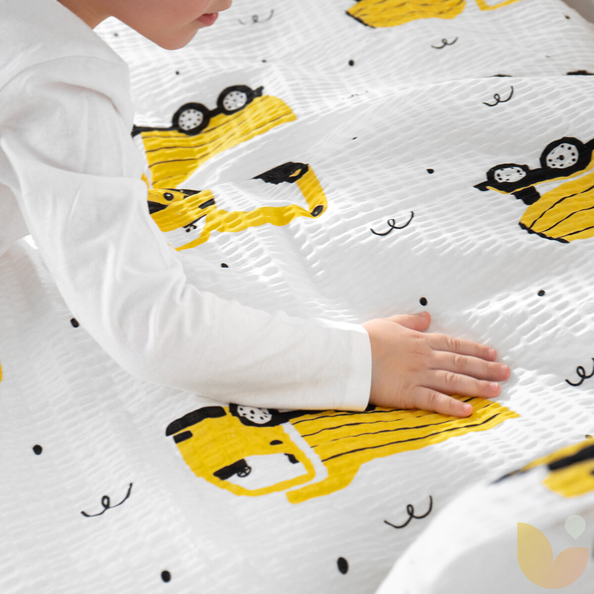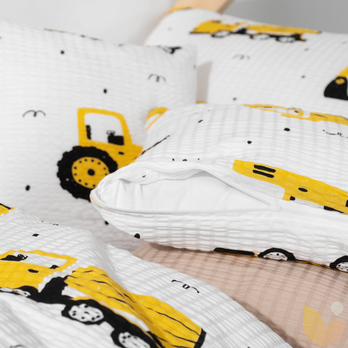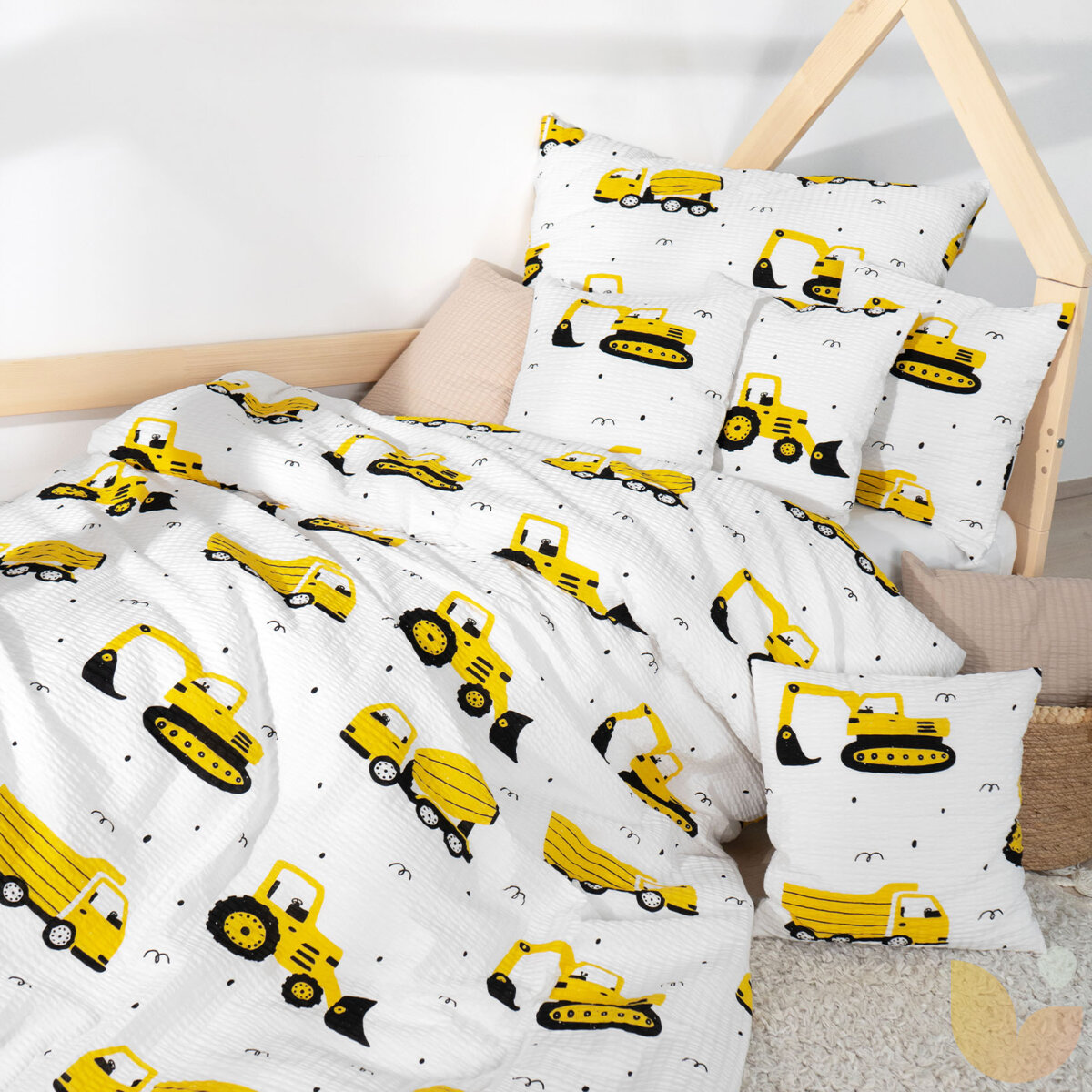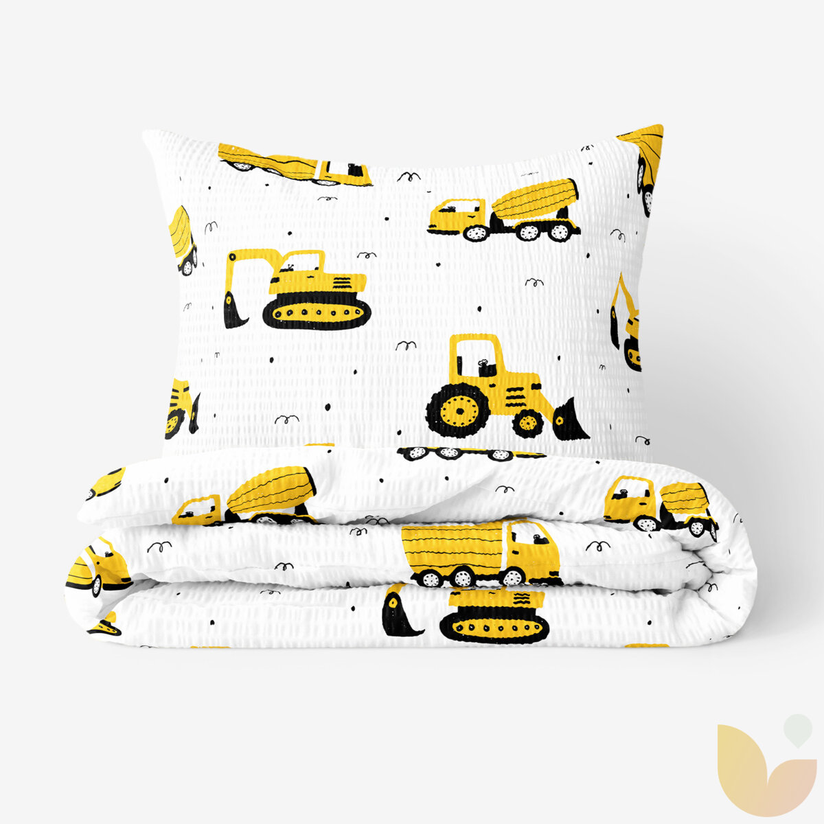 Kinder - Seersucker Bettwäsche - Bagger und Baufahrzeuge