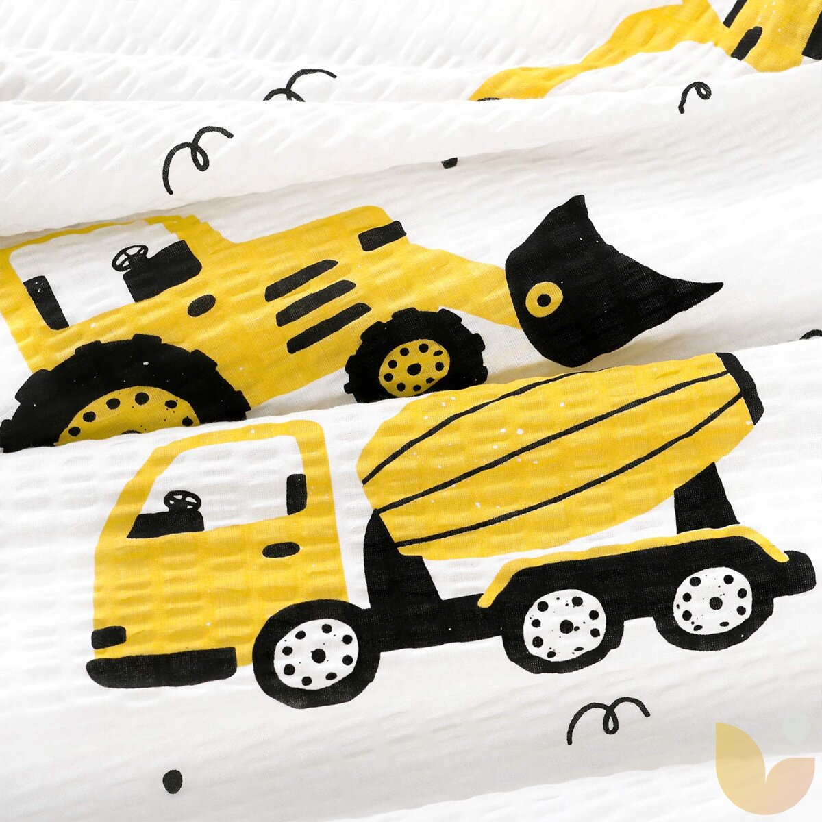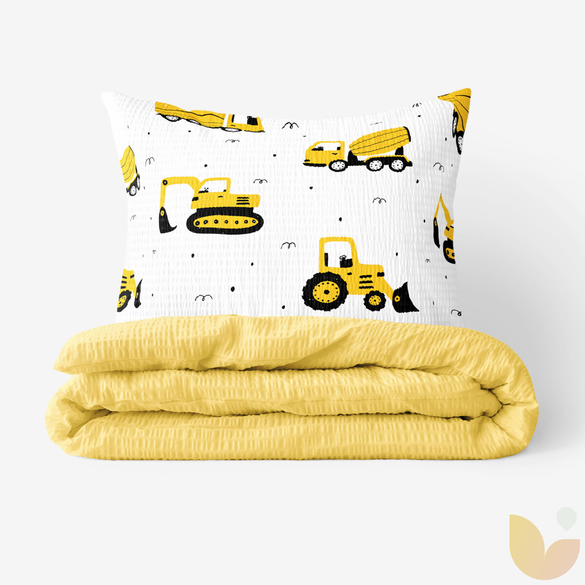 Kinder - Seersucker Bettwäsche Duo - Bagger und Baufahrzeuge mit gelb