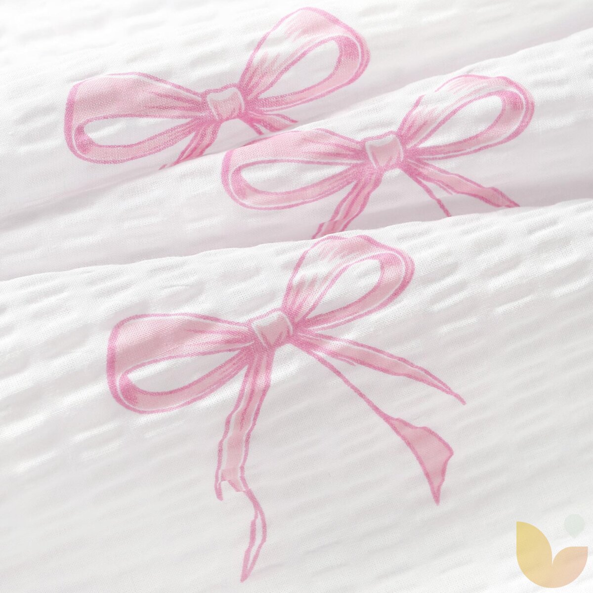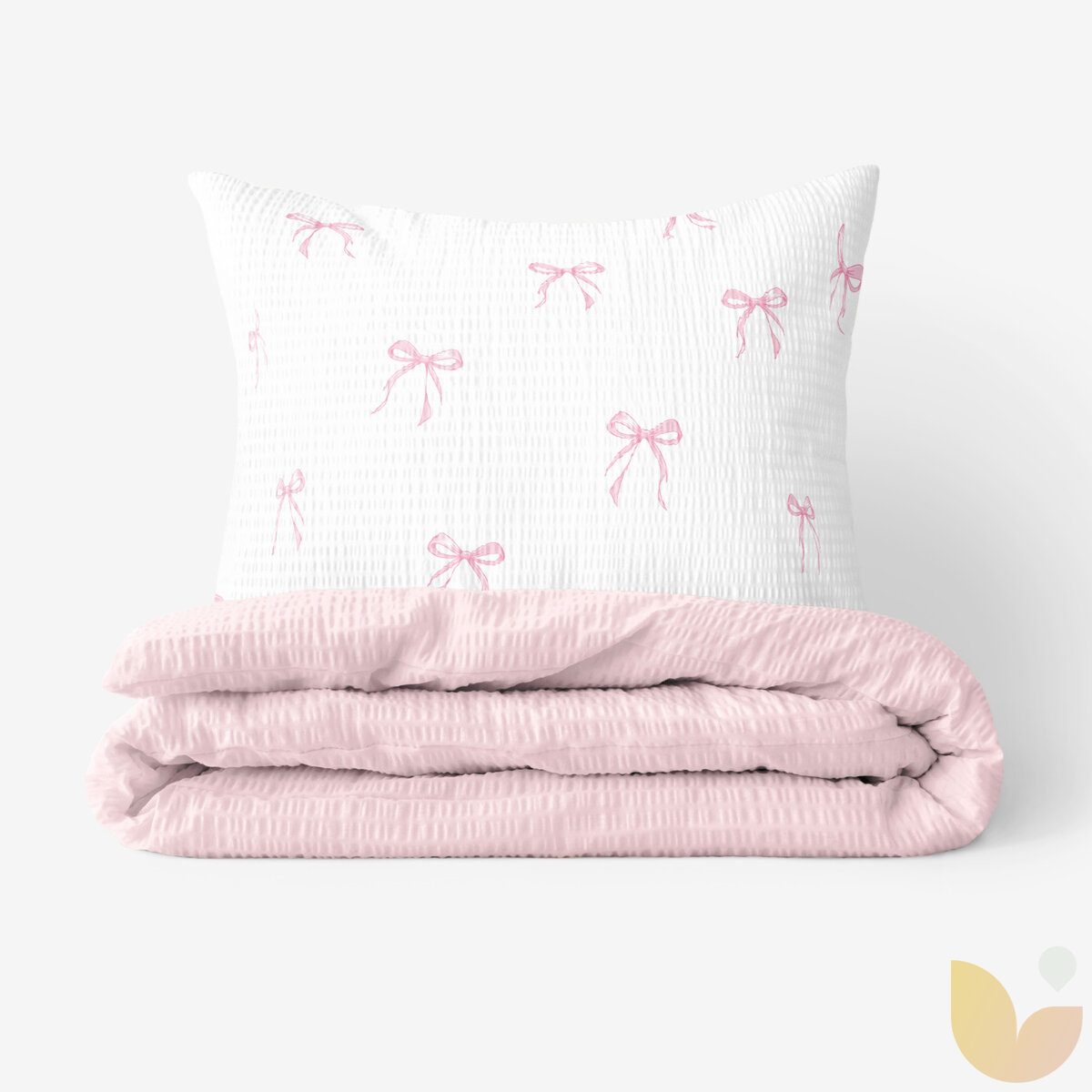 Kinder - Seersucker Bettwäsche Duo - rosa Schleifen mit Puderrosa