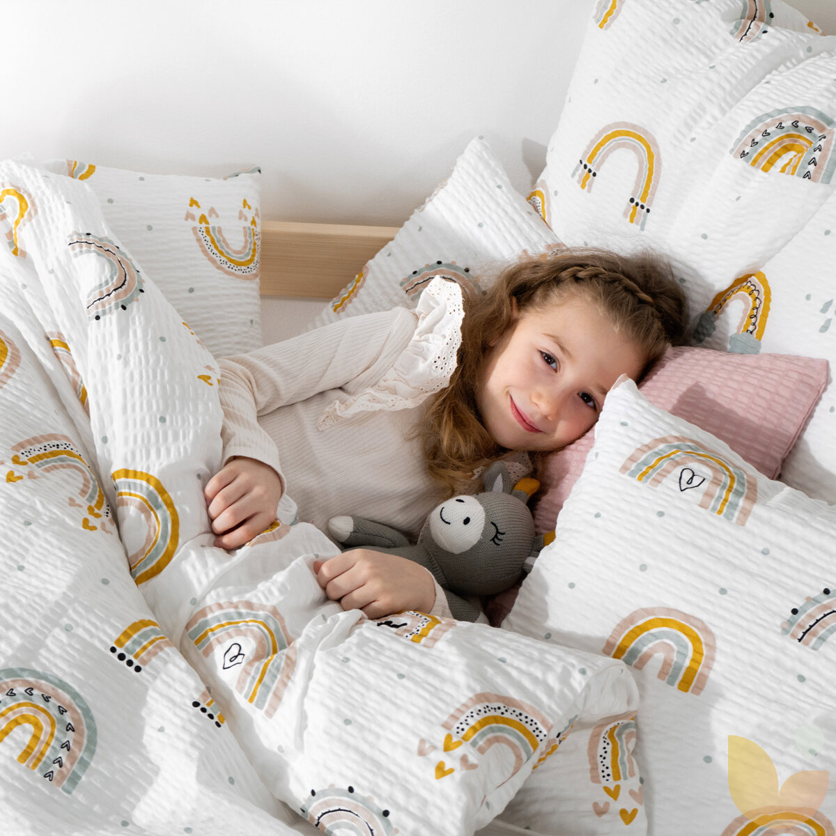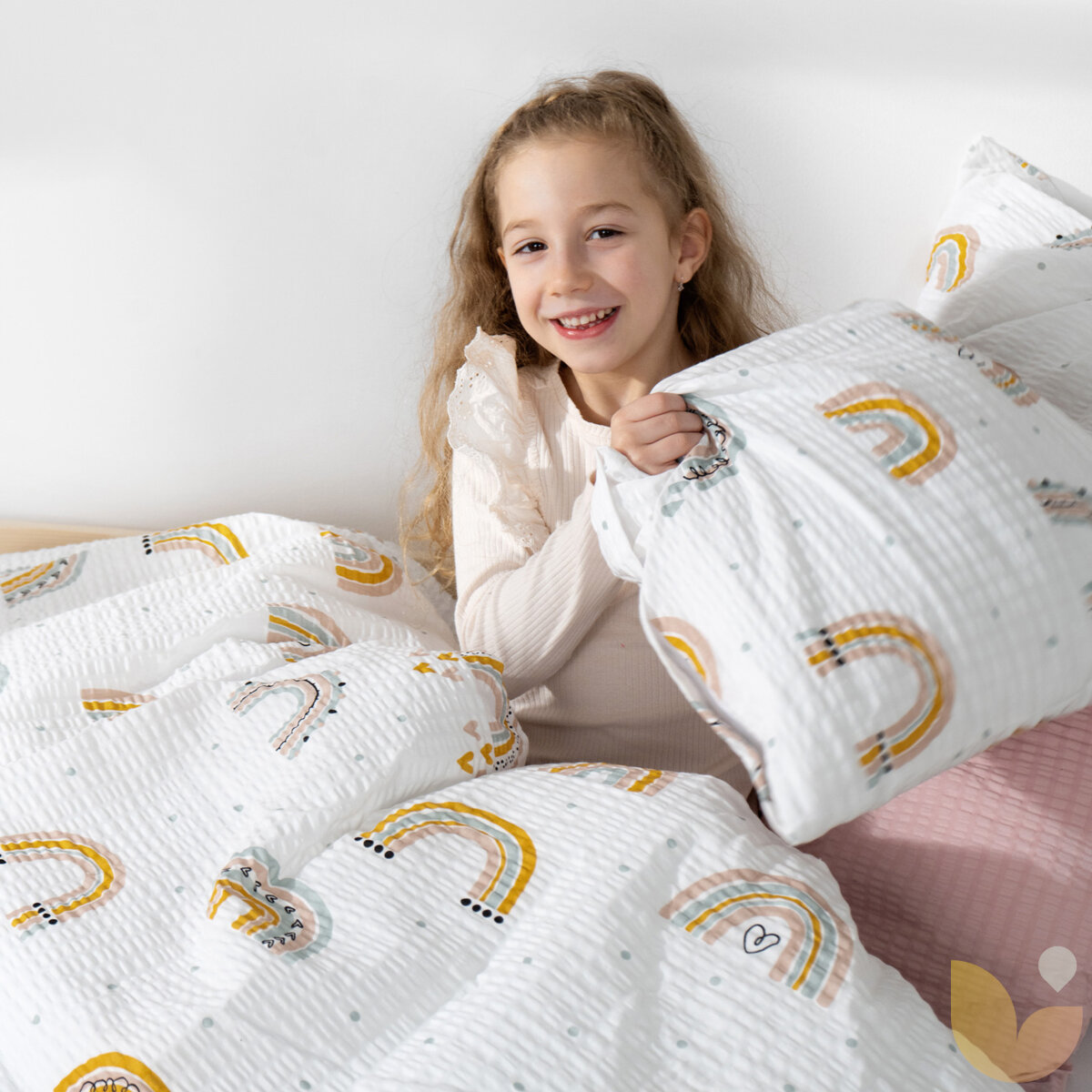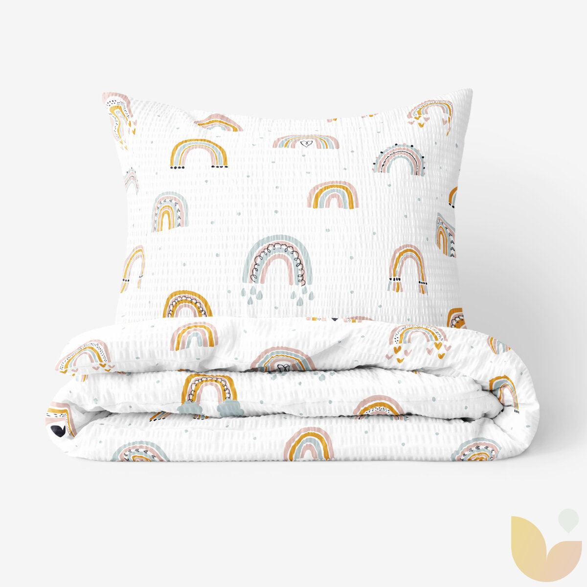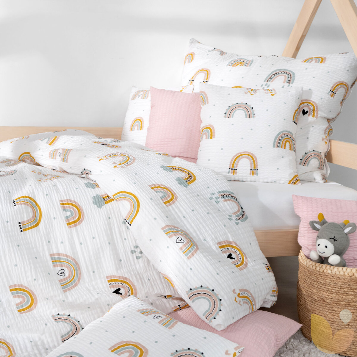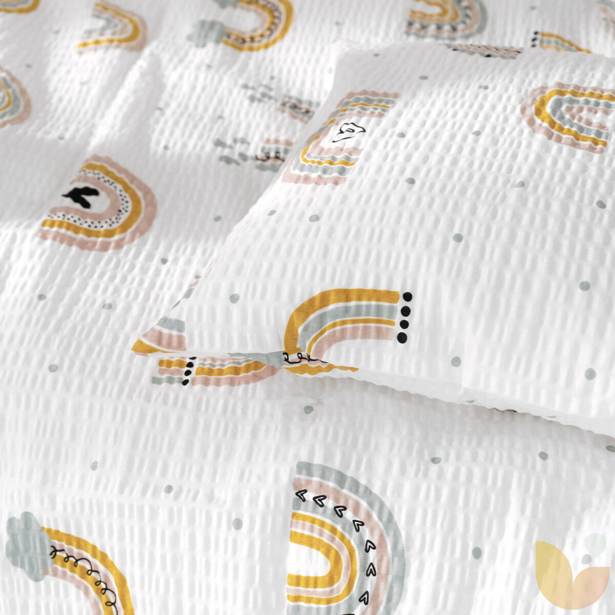 Kinder - Seersucker Bettwäsche - gemalte Regenbögen