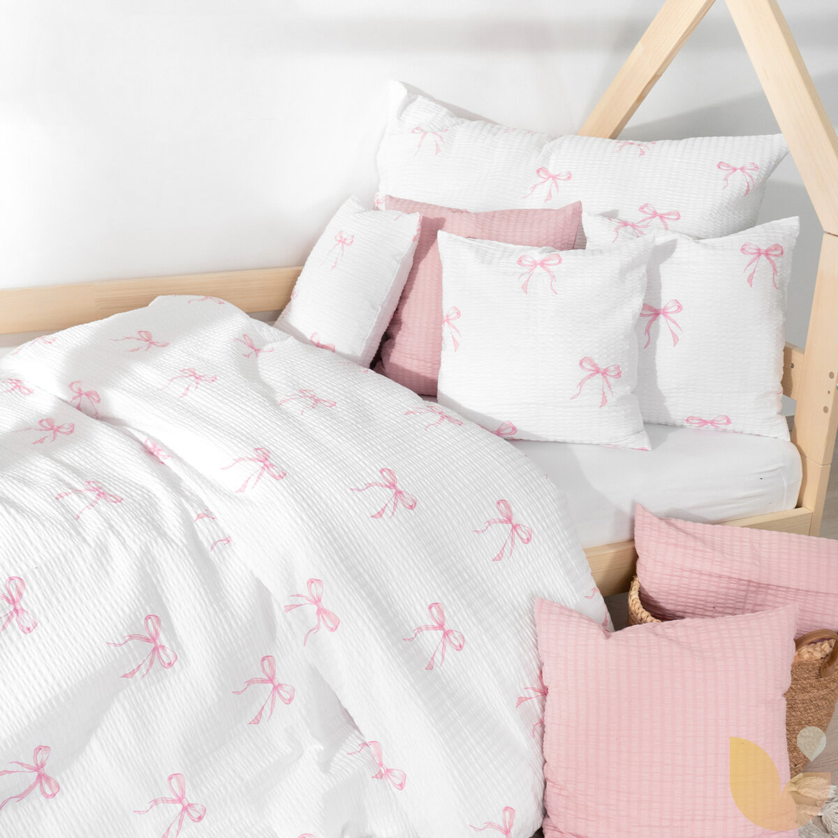 Kinder - Seersucker Bettwäsche - rosa Schleifen