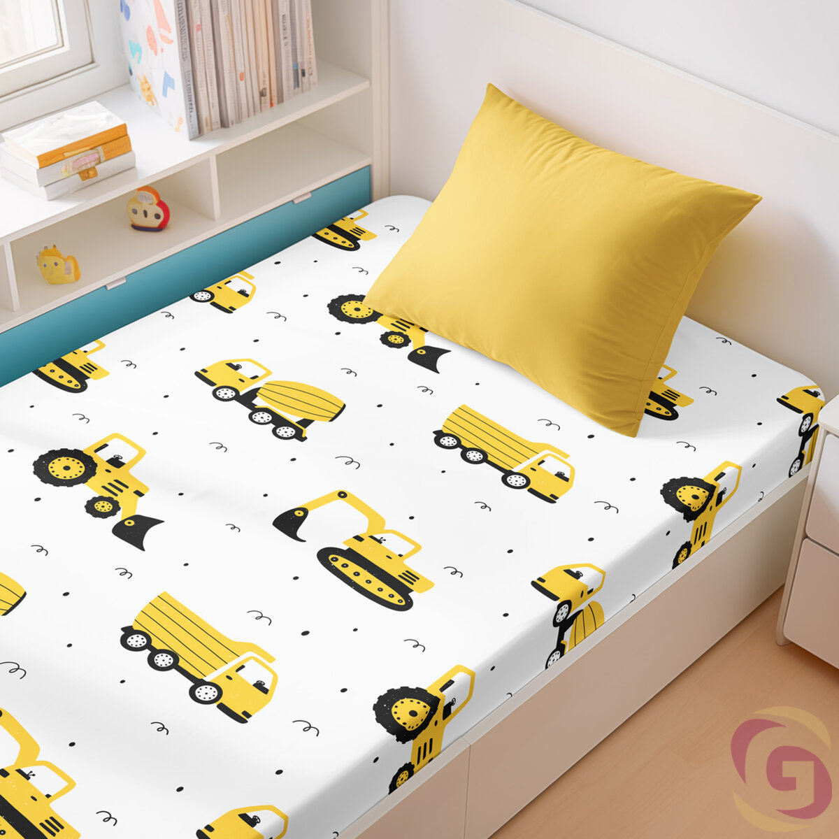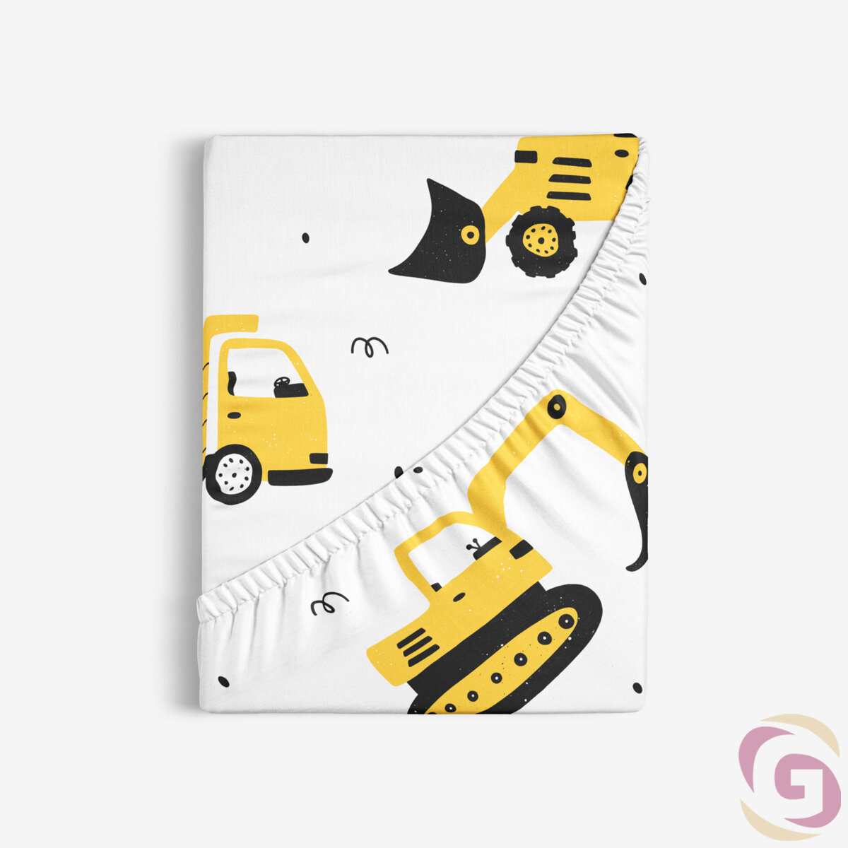 Kinder-Spannbetttuch aus Baumwolle - Bagger und Baufahrzeuge
