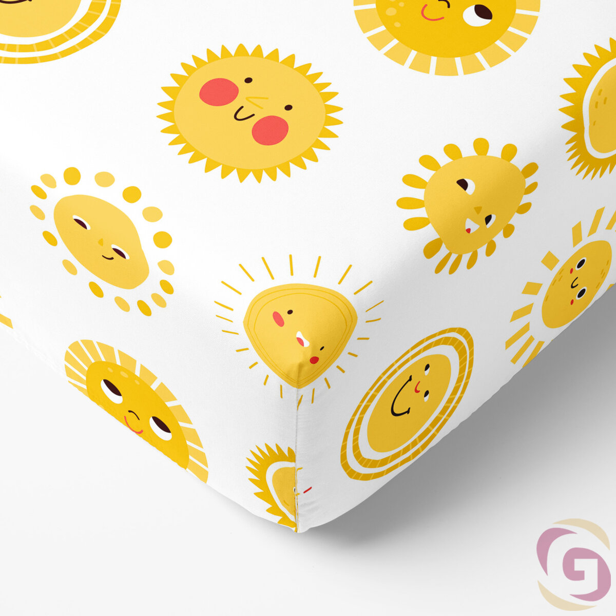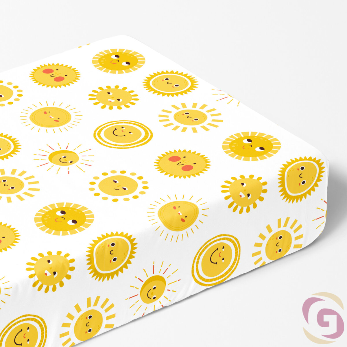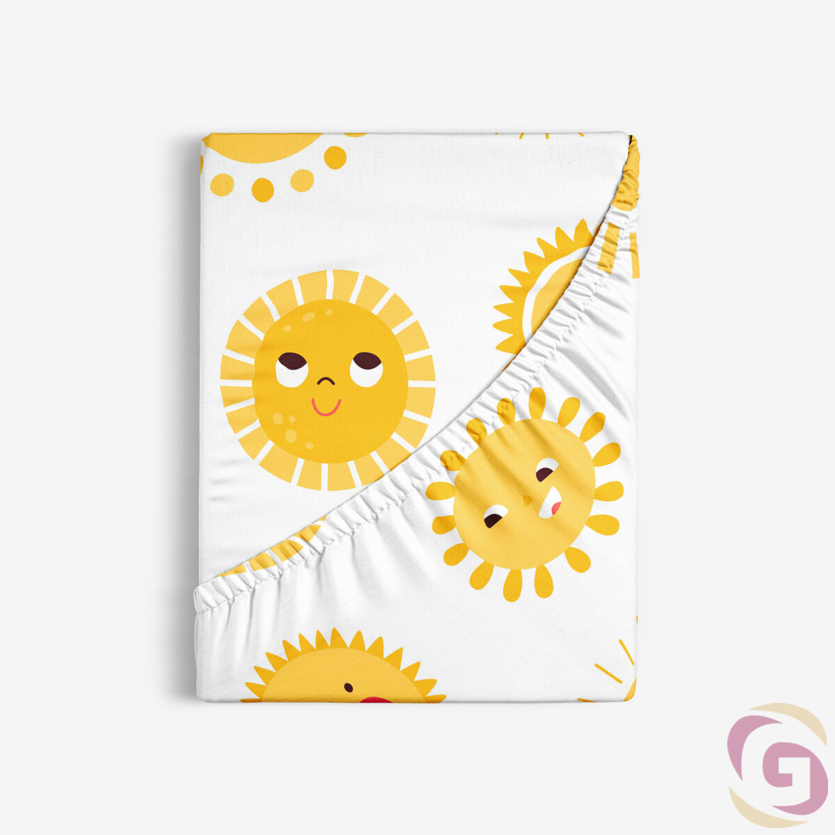 Kinder-Spannbetttuch aus Baumwolle - lachende Sonnen