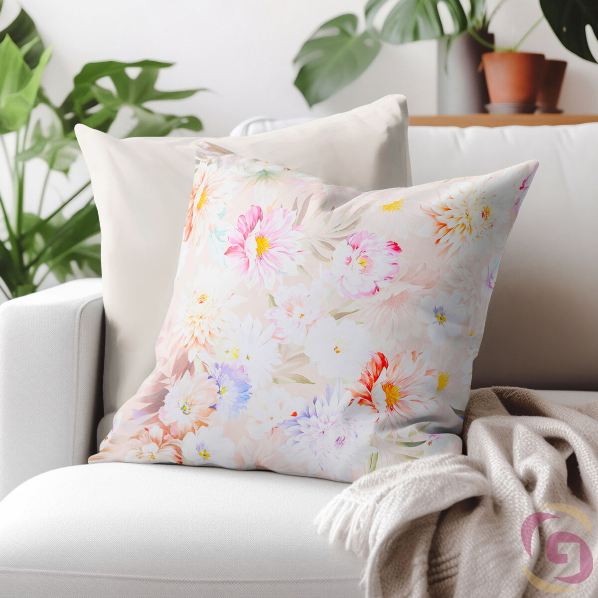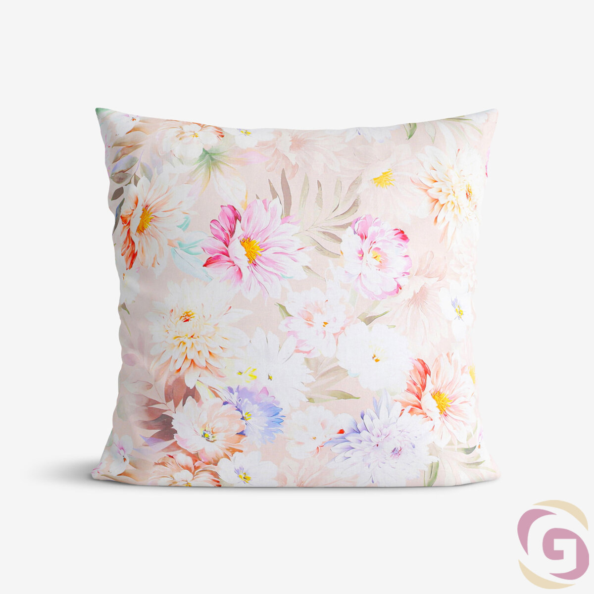 Kissenbezug aus Baumwolle mit den bunten Frühlingsblumen auf beigem Hintergrund (gleiches Motiv auf beiden Seiten). Der Kissenbezug ist aus hochwertiger und angenehmer 100% Baumwolle gefertigt. Er hat einen praktischen Reißverschluss.