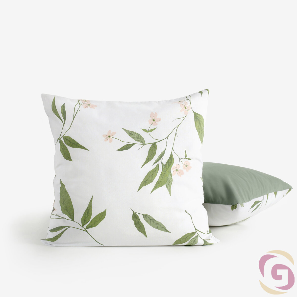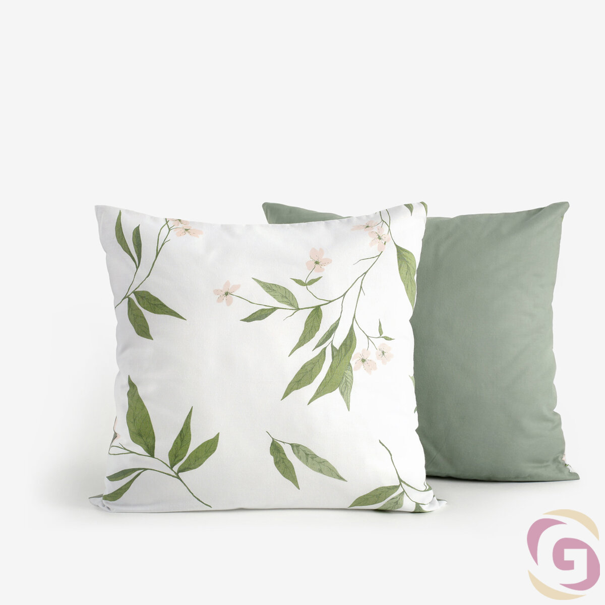 Kissenbezug aus Baumwolle Duo - Duft nach Jasmin mit Salbeigrün