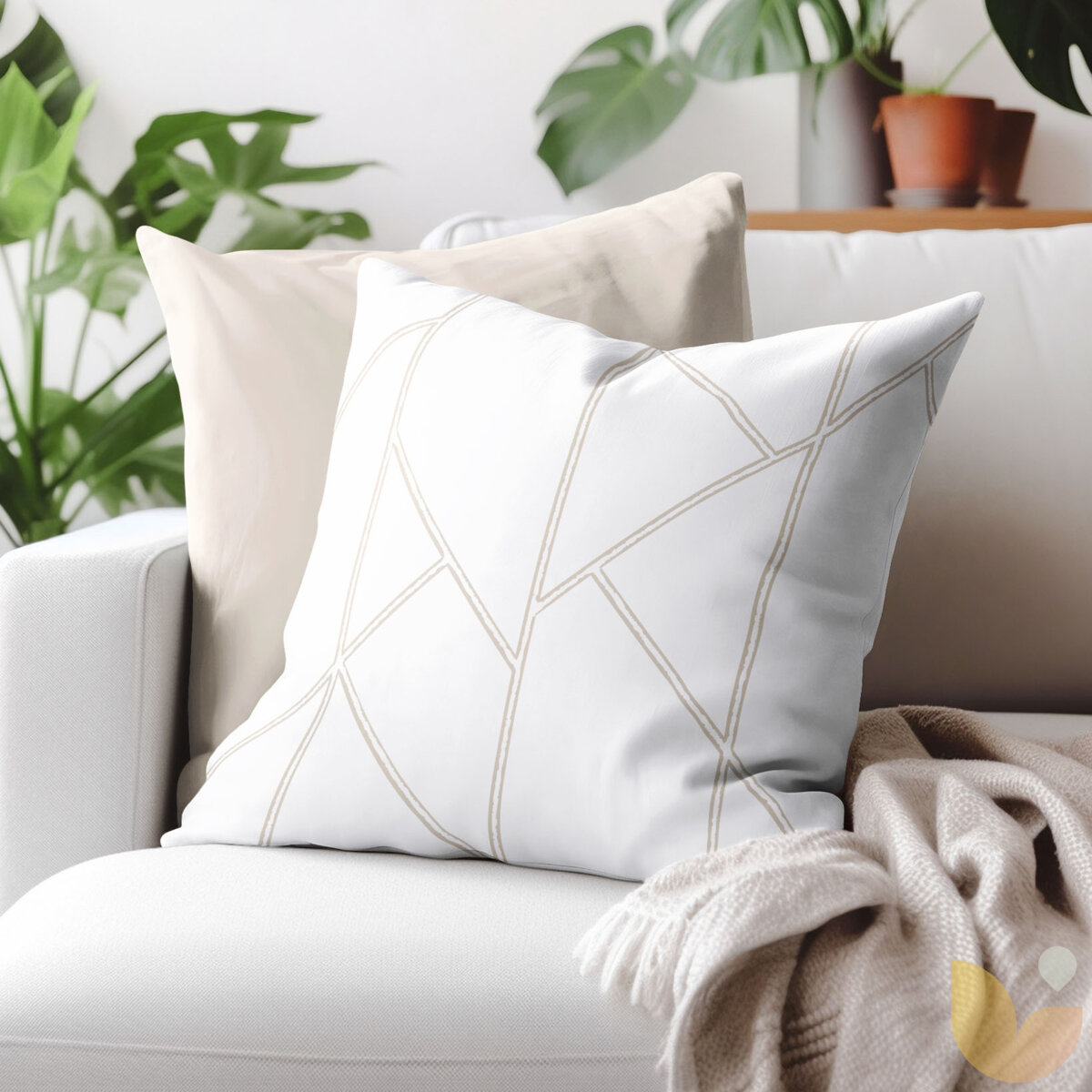 Kissenbezug aus Baumwolle - Geometrische Linien auf Weiß