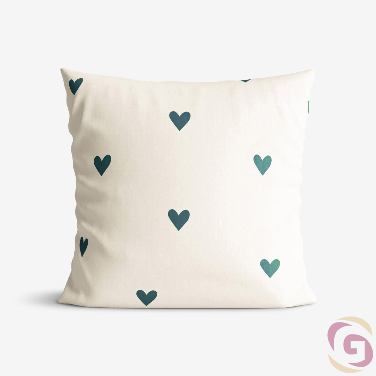 Kissenbezug aus Baumwolle - Herzchen auf Elfenbein