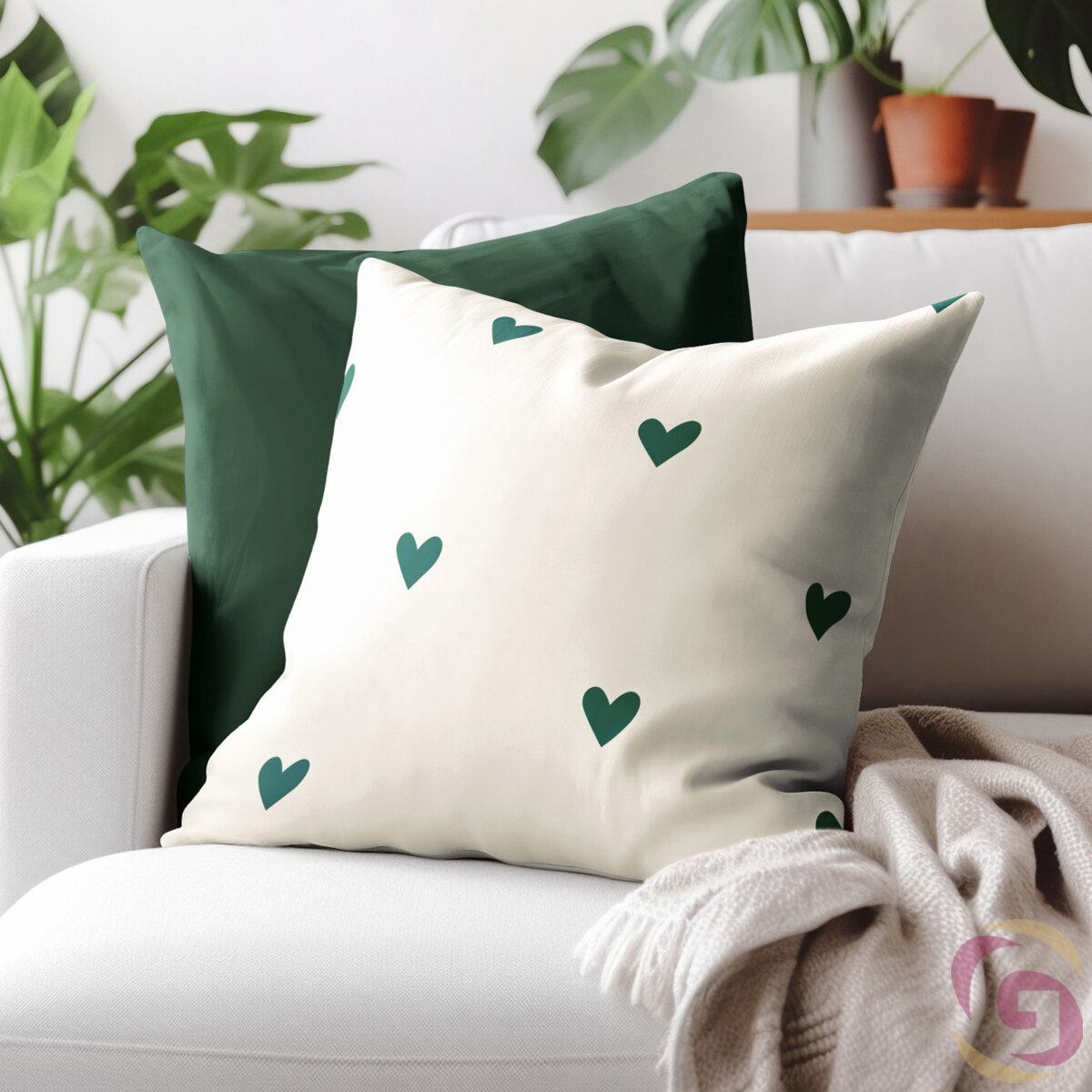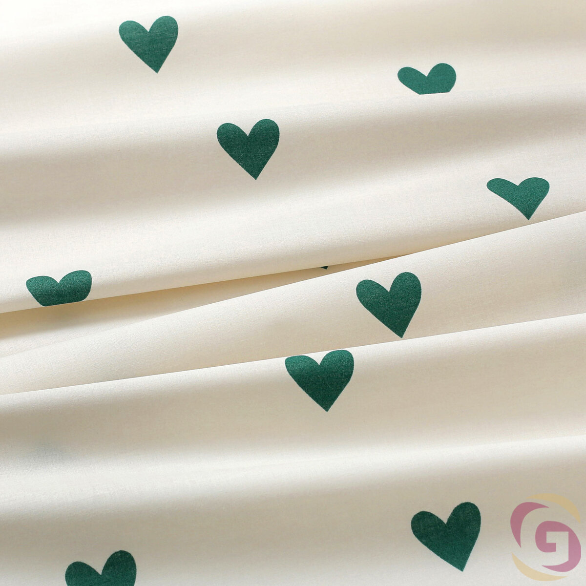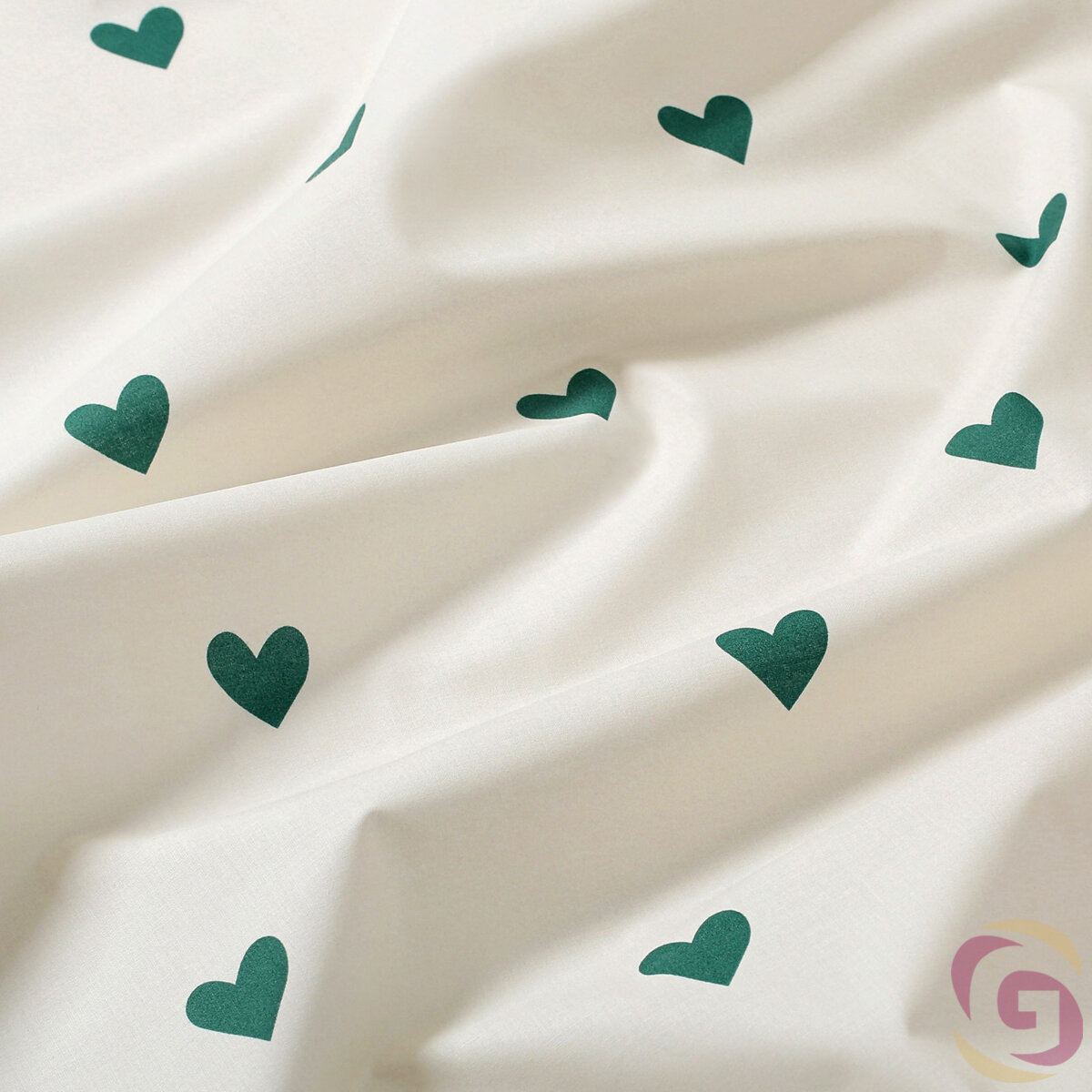 Liebe liegt in der Luft und vielleicht bald auch bei Ihnen zu Hause! Verlieben Sie sich in das romantische Motiv dunkelgrüne Herzen auf Elfenbein und schaffen Sie eine harmonische Atmosphäre in Ihrer Wohnung.