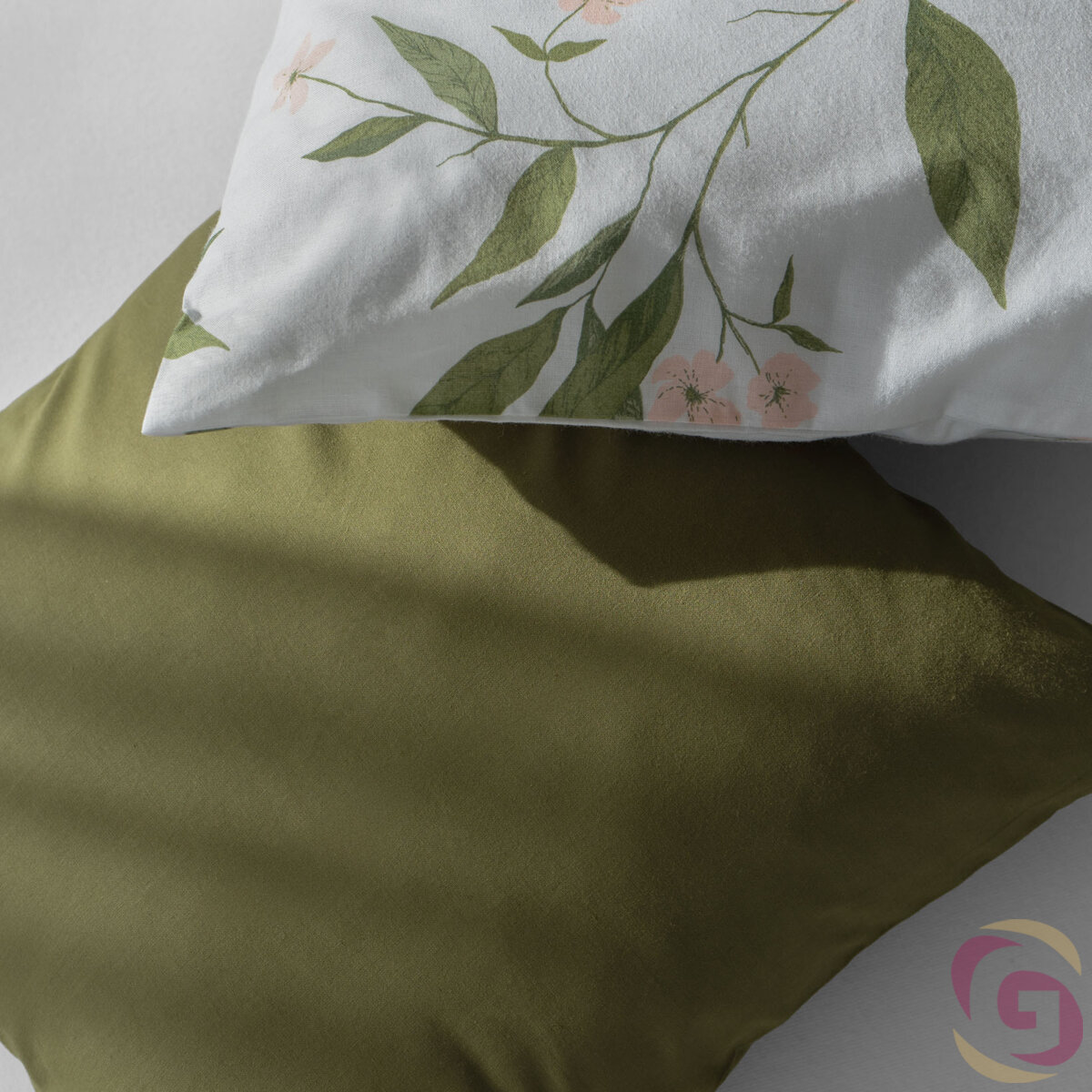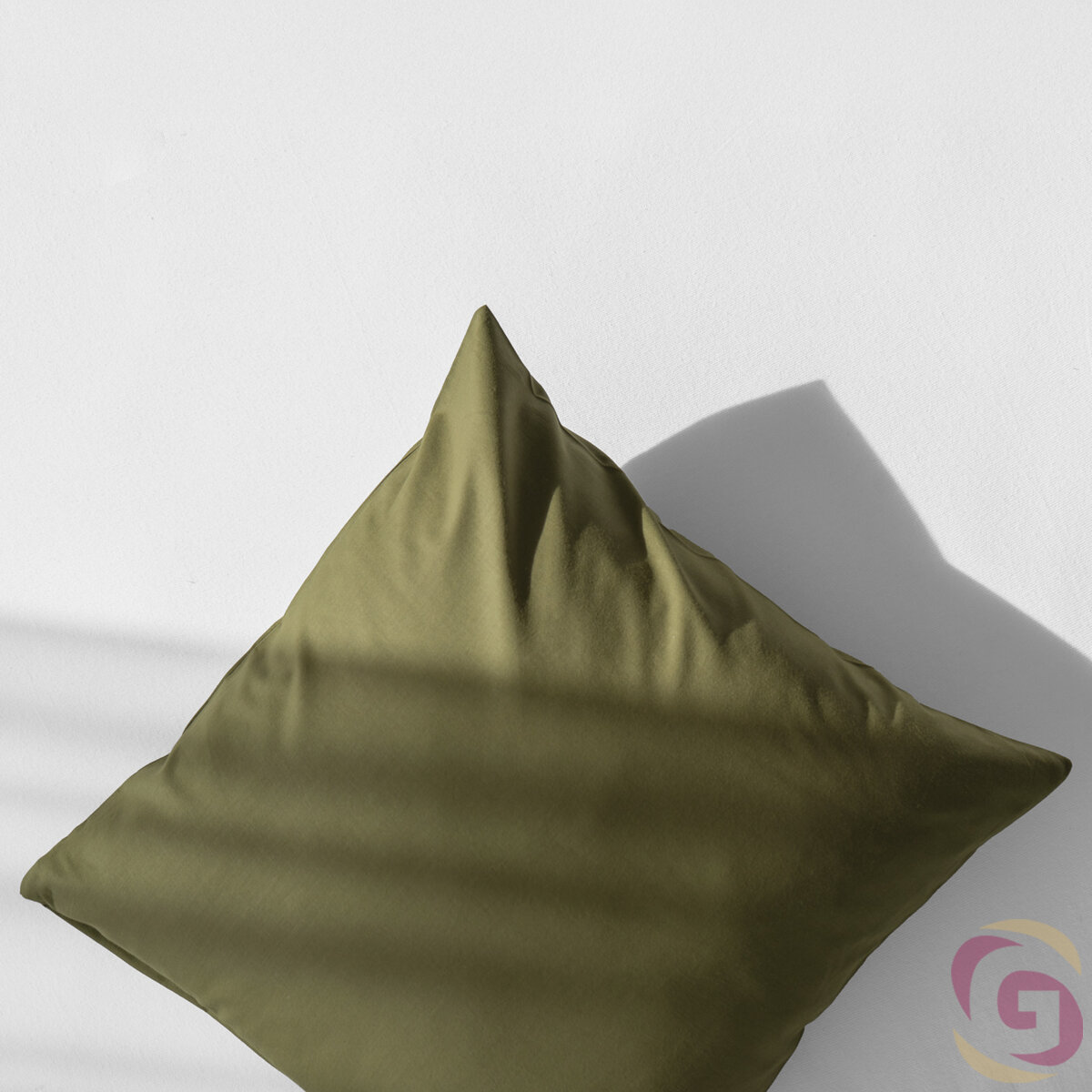 Kissenbezug aus Baumwolle in der Farbe olivgrün. Der Kissenbezug ist aus hochwertigem 100% Baumwollstoff gefertigt, der sich sehr angenehm anfühlt.