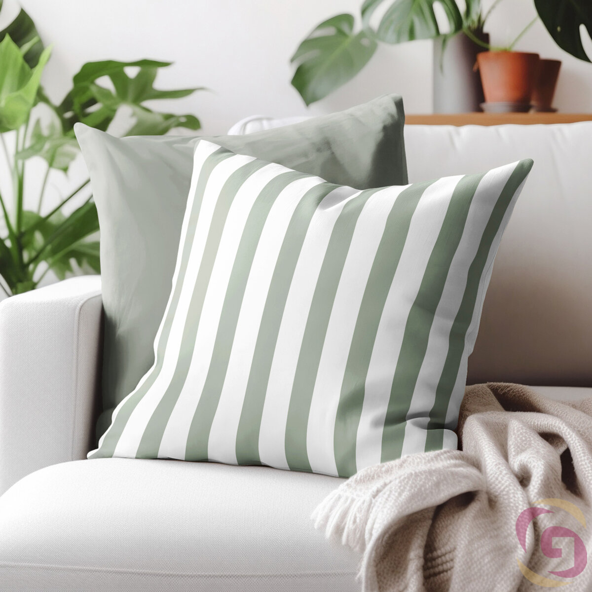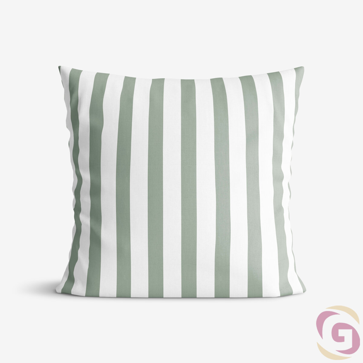 Kissenbezug aus Baumwolle - salbeigrüne Streifen