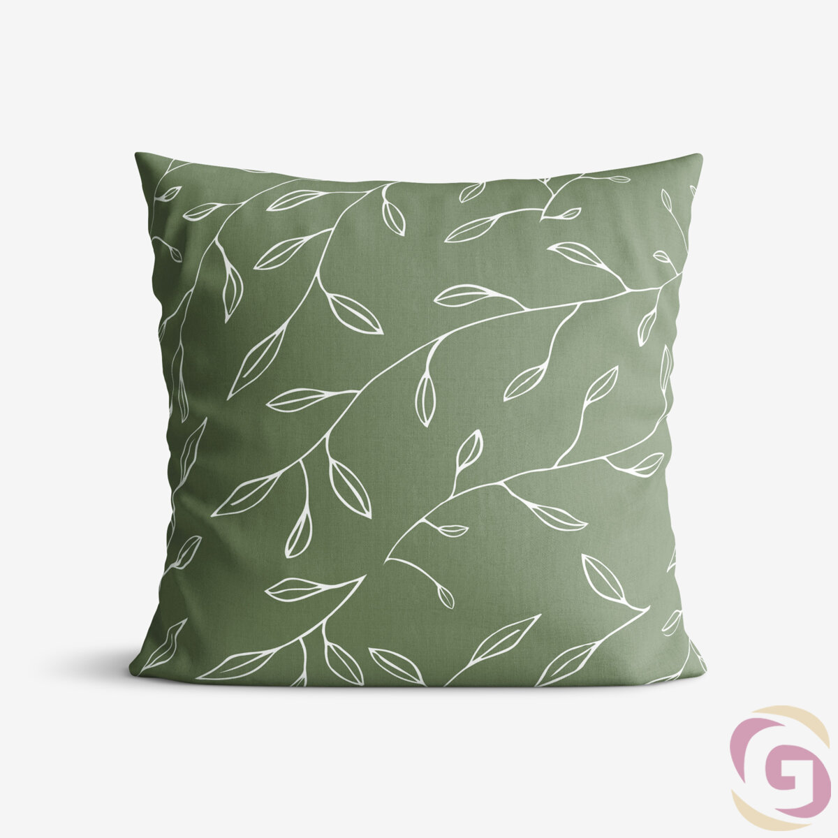 Kissenbezug aus Baumwolle mit Teeblätter auf grünem Hintergrund (gleiches Motiv auf beiden Seiten). Der Kissenbezug ist aus hochwertiger und angenehmer 100% Baumwolle gefertigt. Er hat einen praktischen Reißverschluss.