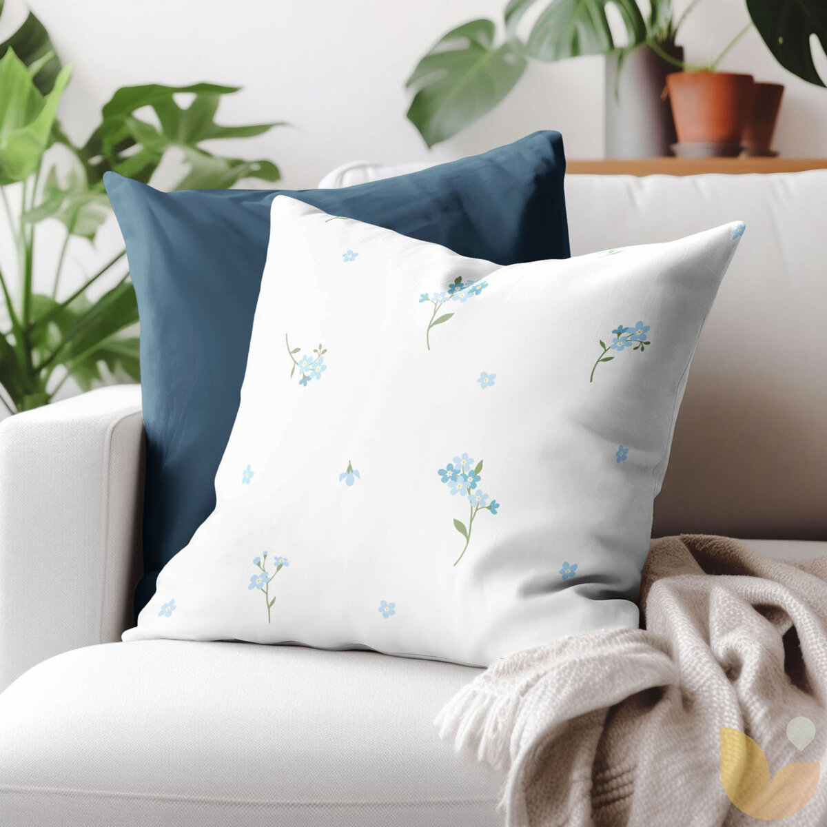 Kissenbezug aus Baumwolle - Vergissmeinnicht