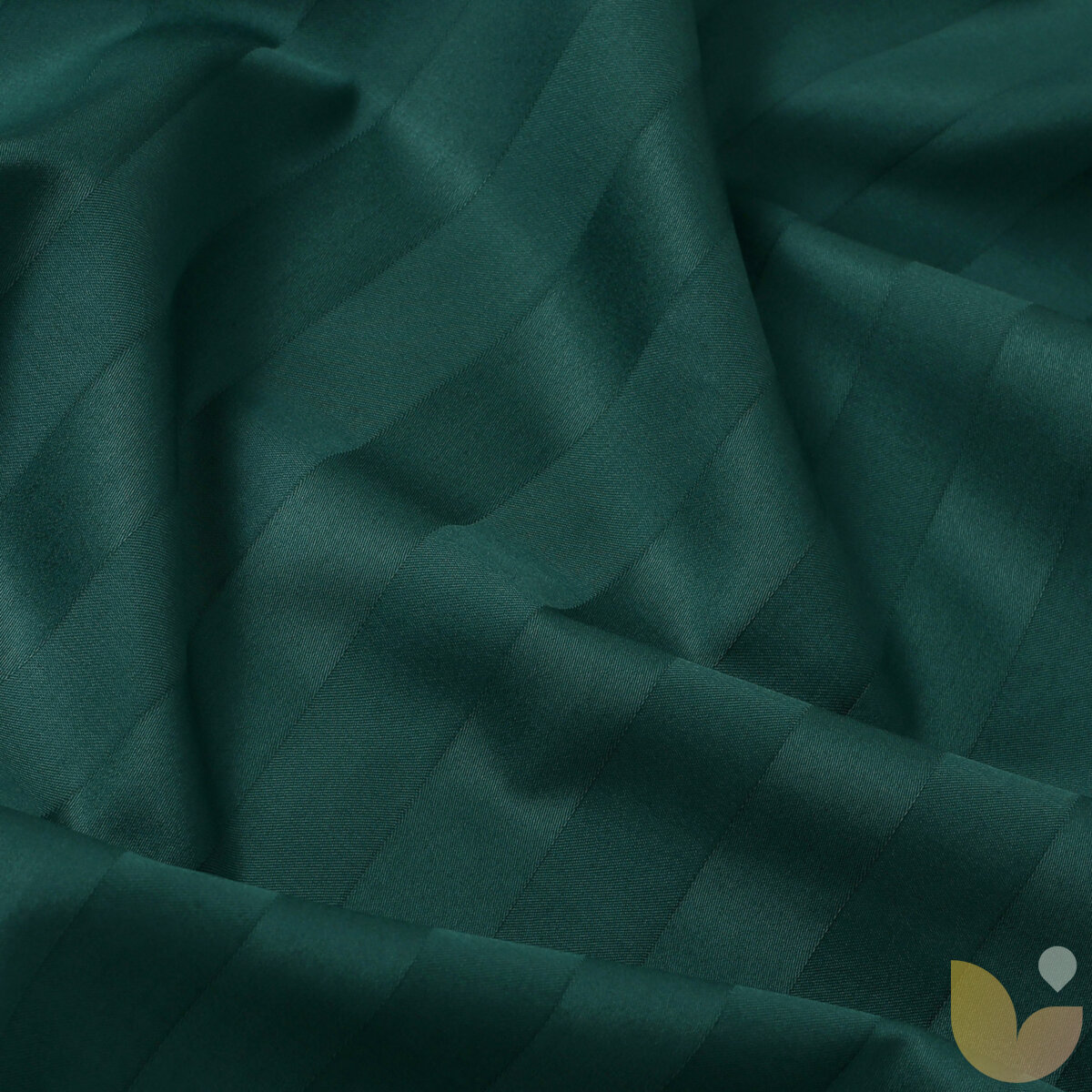 Spannbettlaken aus Damask - dunkelgrüne Streifen mit Satin-Glanz