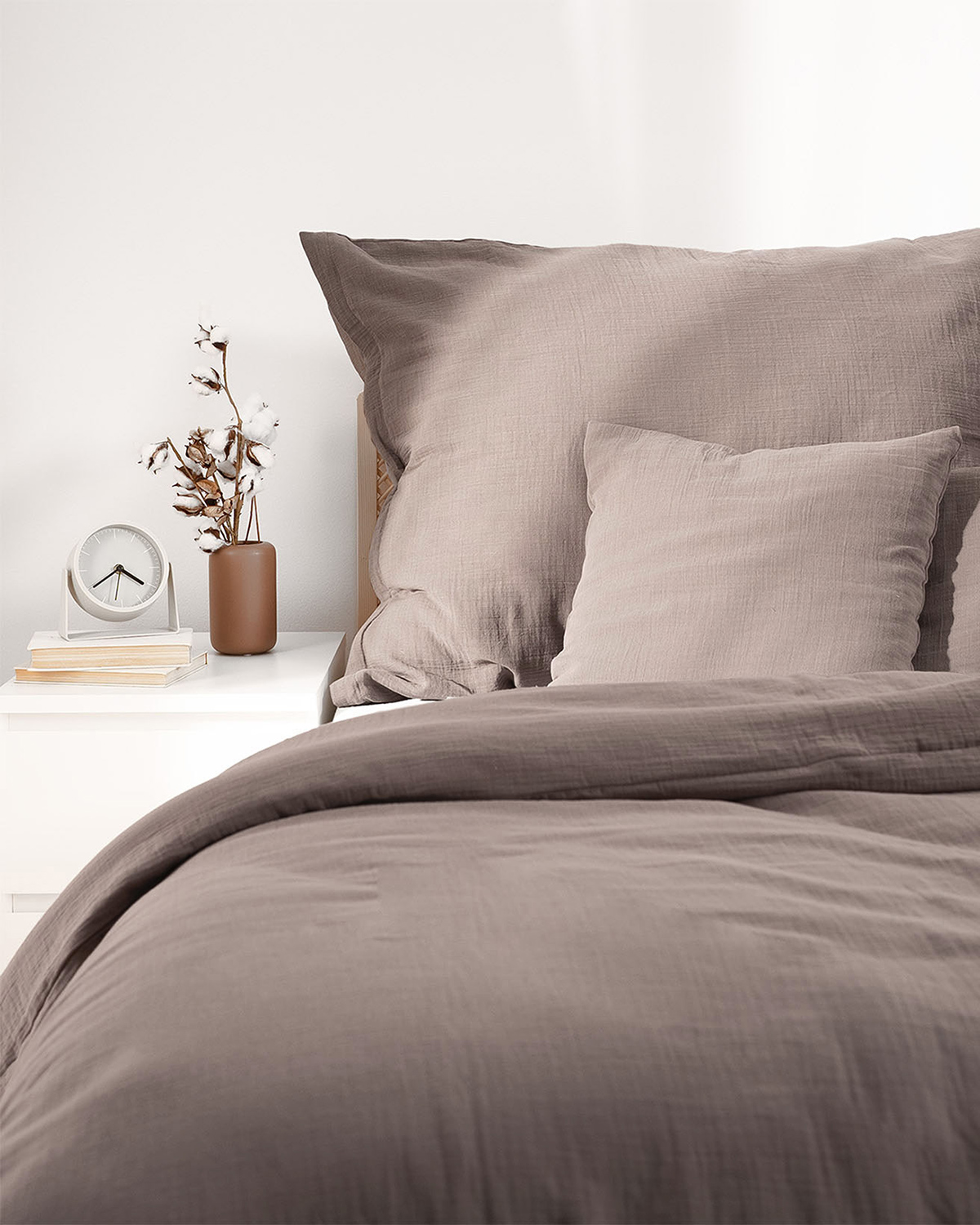 Musselin-Bettwäsche ist nicht nur ein funktionaler Gegenstand. Sie ist ein Anblick, zu dem man immer wieder zurückkehren möchte. Luftige Struktur, weiche Linien, natürliche Farben. All das zusammen schafft ein Schlafzimmer, in dem man sich wirklich wohlfühlt.