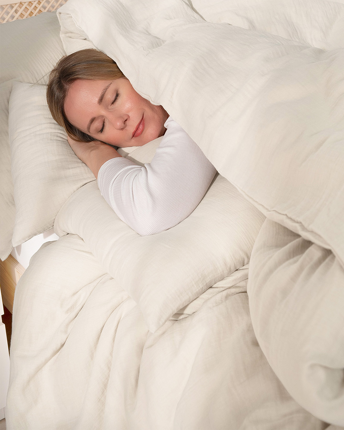 100 % Baumwolle bedeutet, dass Musselin natürlich atmungsaktiv ist. In warmen Nächten leitet er die Wärme vom Körper ab, in kühleren Zeiten hingegen wärmt er angenehm. Kurz gesagt: Er passt sich Ihnen an, nicht umgekehrt.