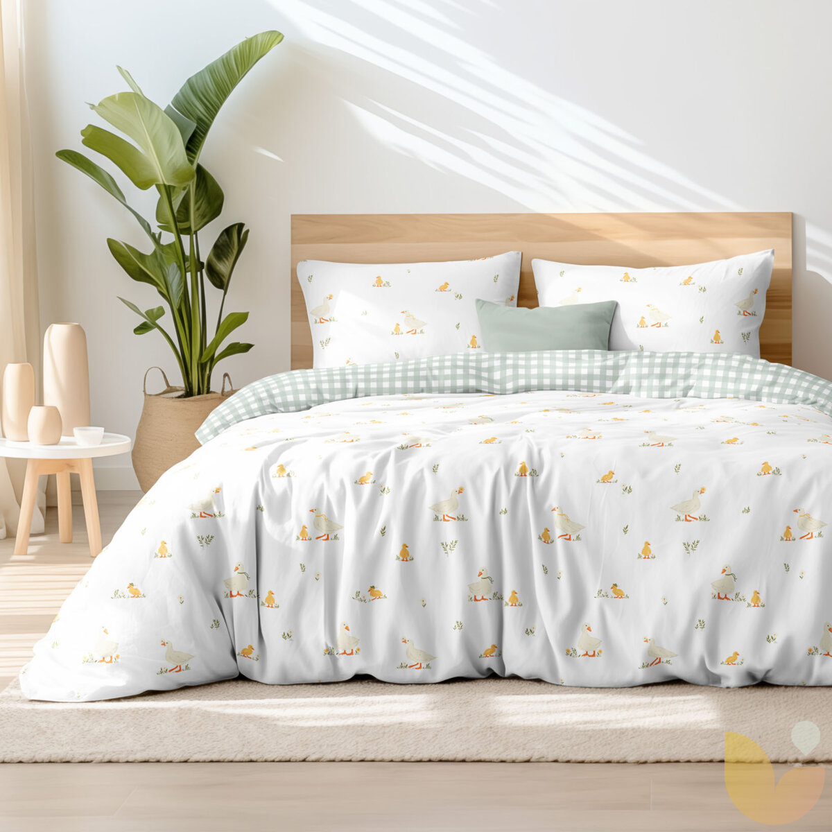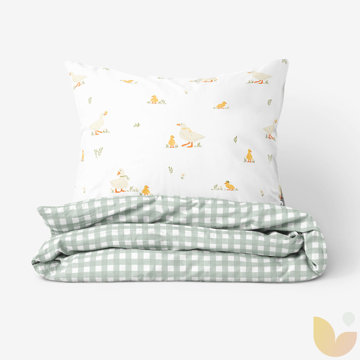Ostern Bettwäsche aus Baumwolle - Enten mit Salbeigrüne Würfel