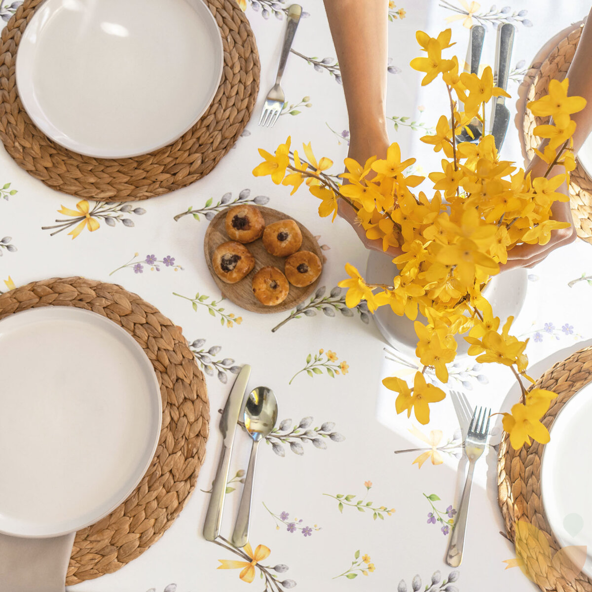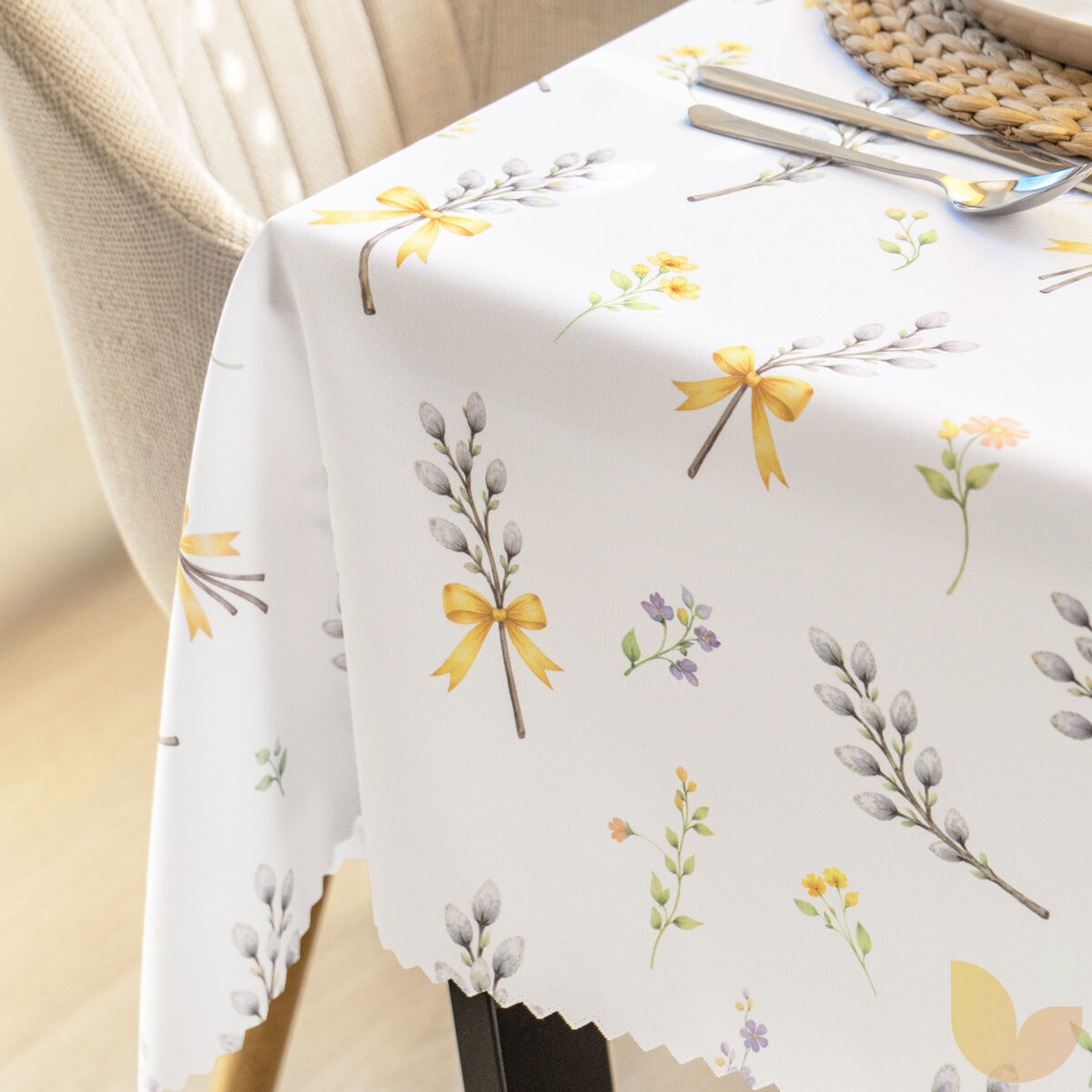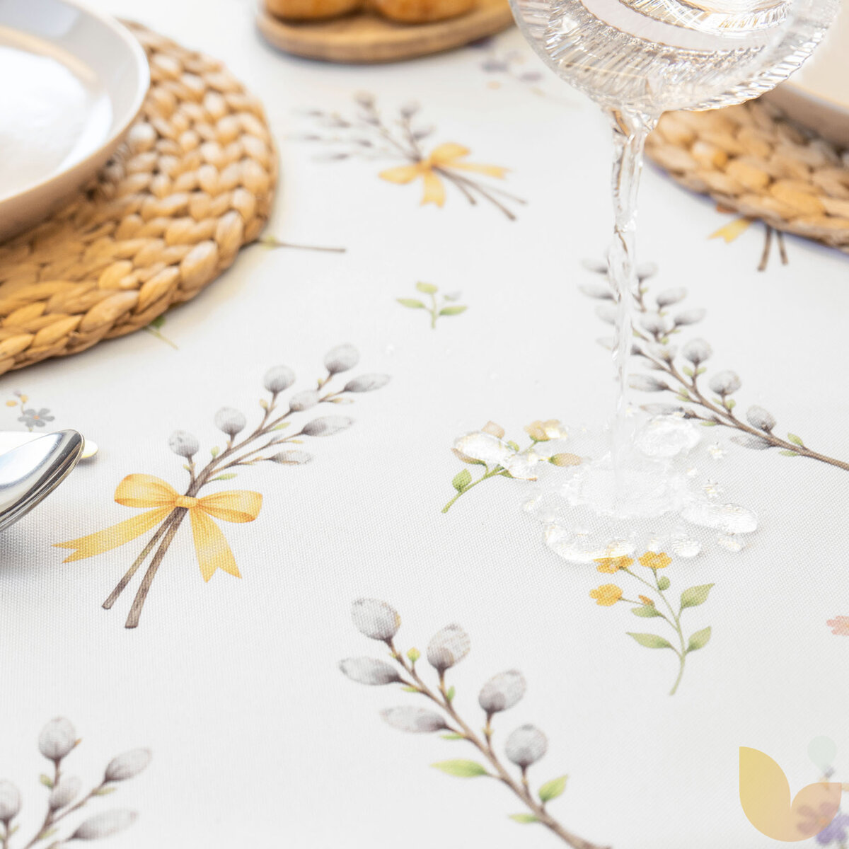 Frühlings-Eckige Teflon-Tischdecke - Weidenkätzchen