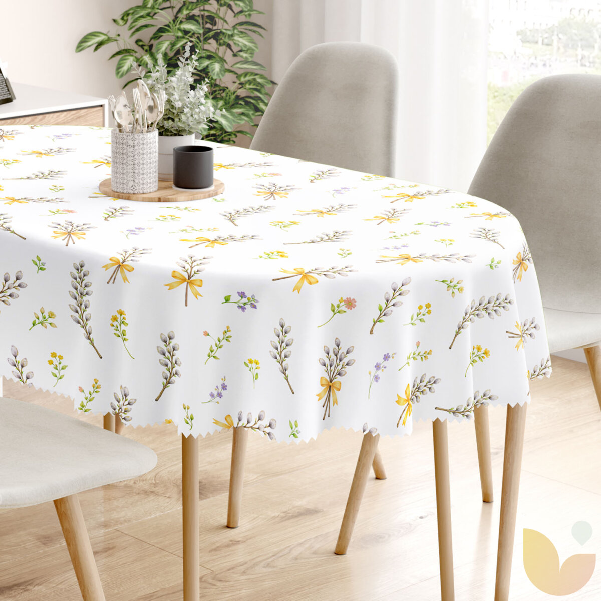 Ostern Ovale Tischdecke Teflon - Weidenkätzchen