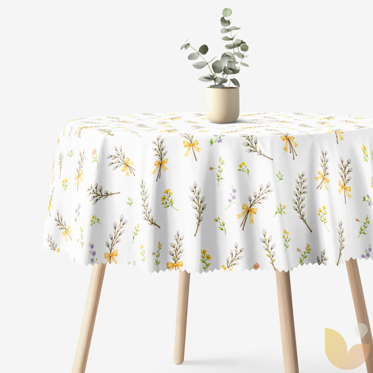 Ostern Runde Tischdecke Teflon - Weidenkätzchen
