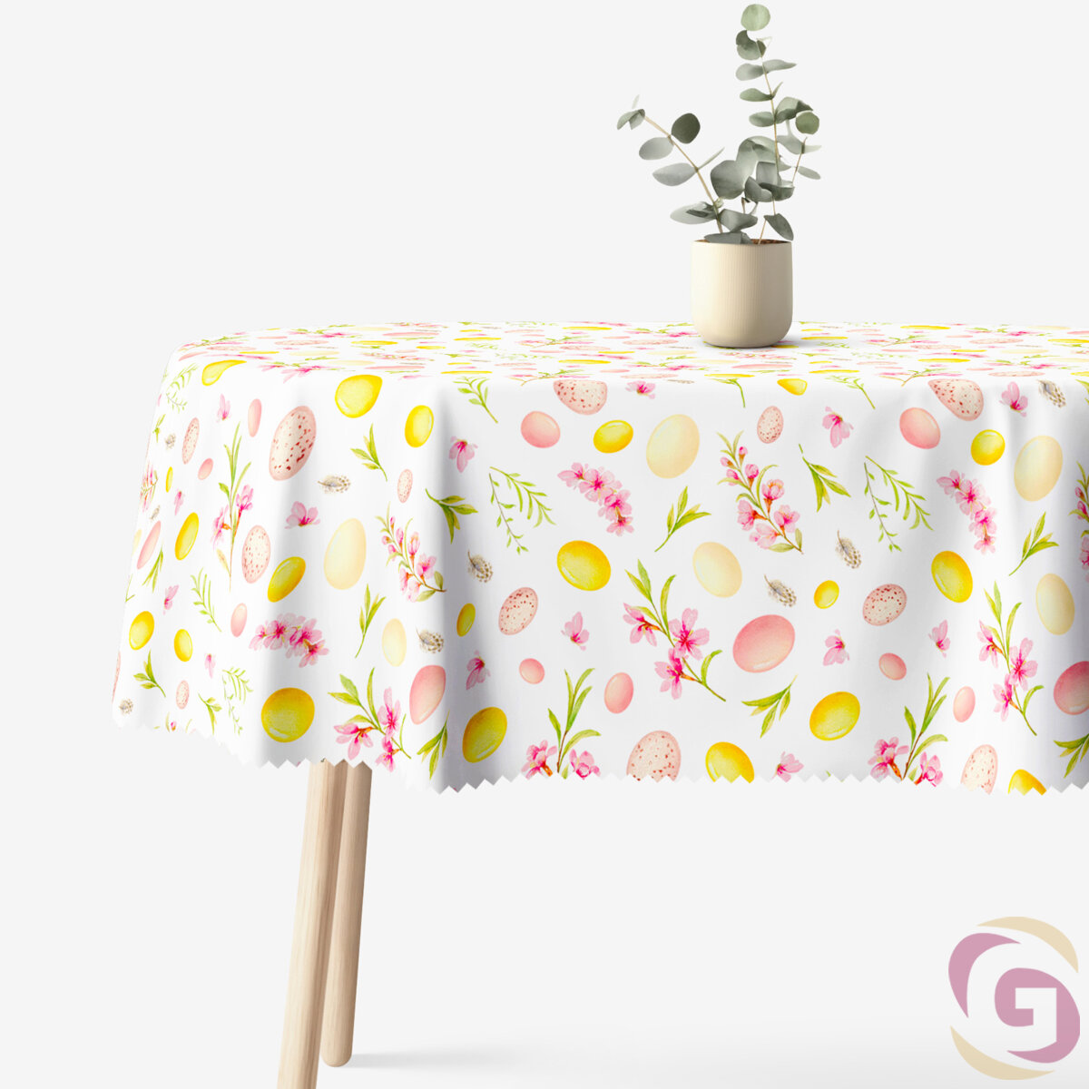 Ostern Runde Tischdecke Teflon - Ostereier mit Blumen