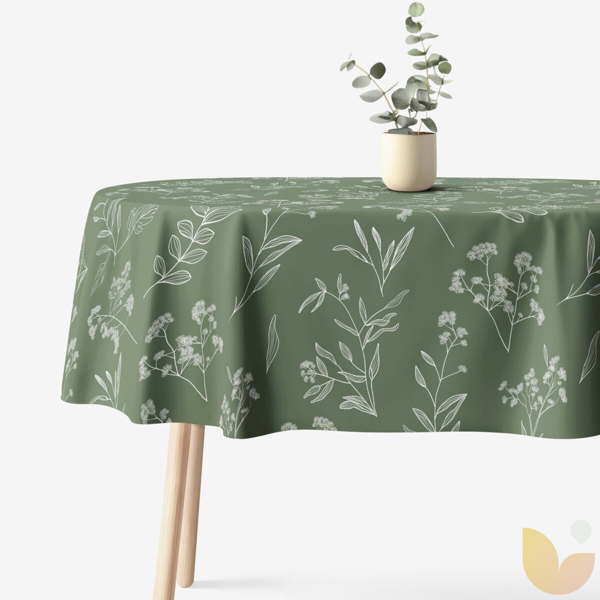 Runde Tischdecke 100% Baumwolle - Kräuterblätter