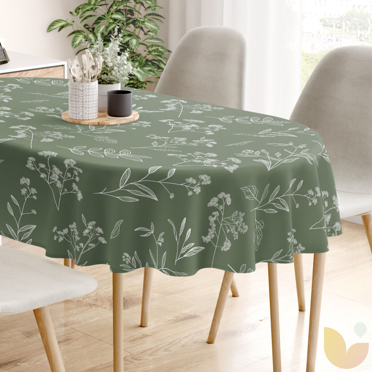 Ovale Tischdecke aus 100% Baumwolle - Kräuterblätter