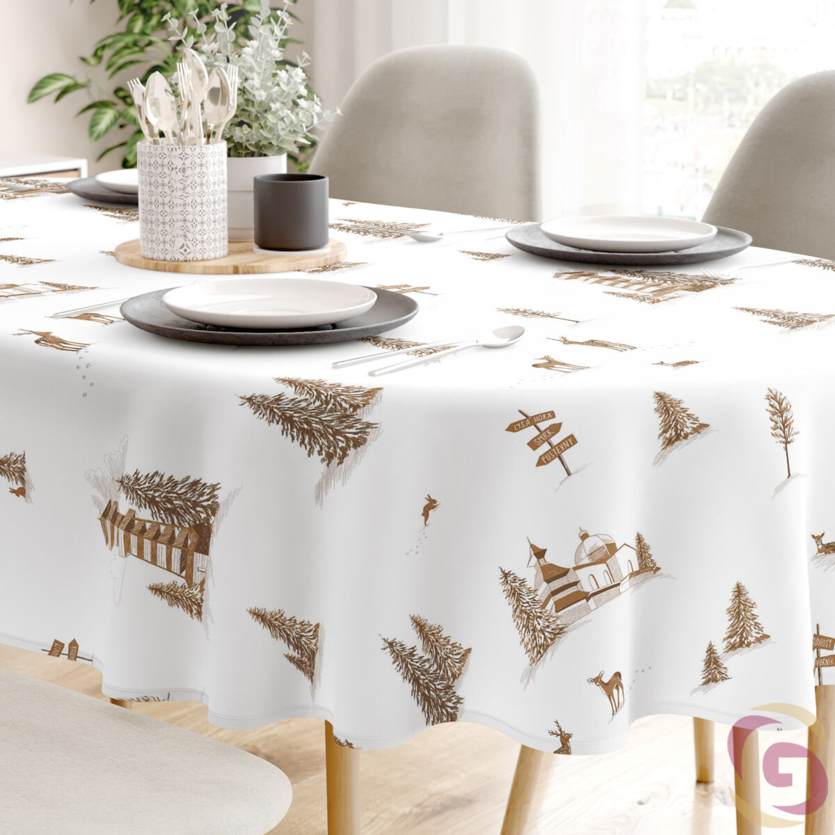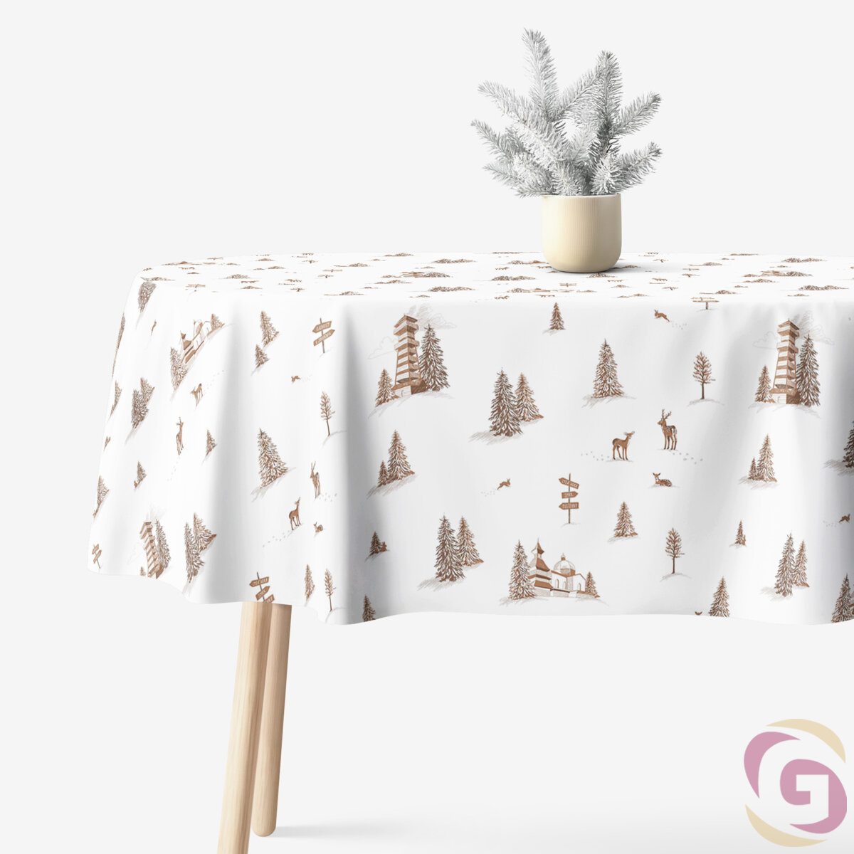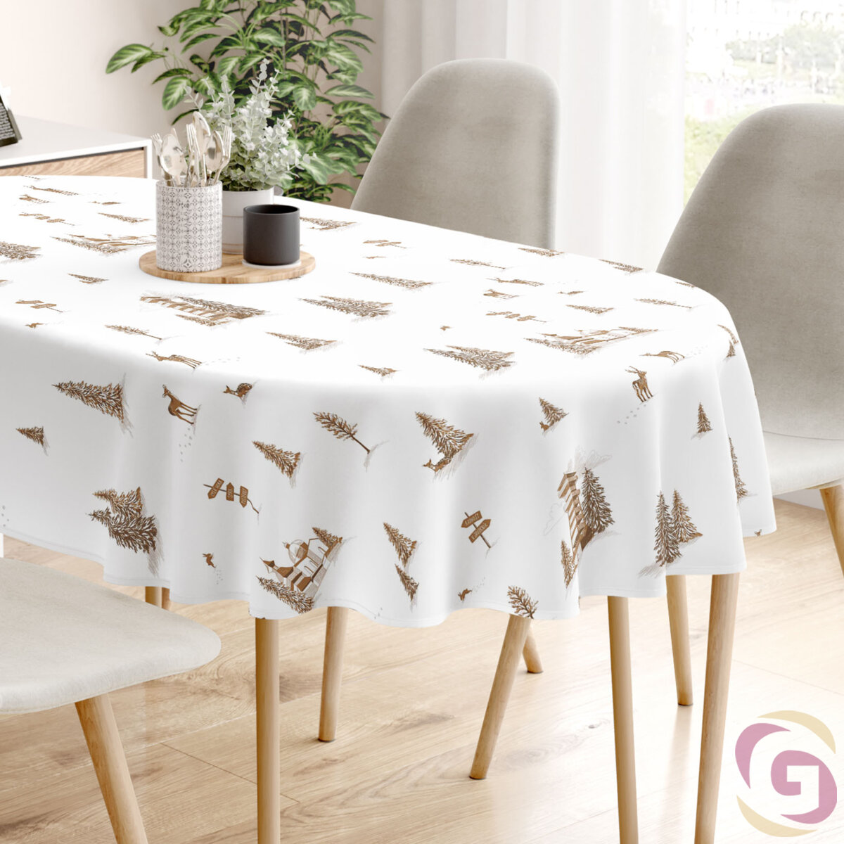 Weihnachtliche ovale Tischdecke aus festem Baumwollköper - Berge