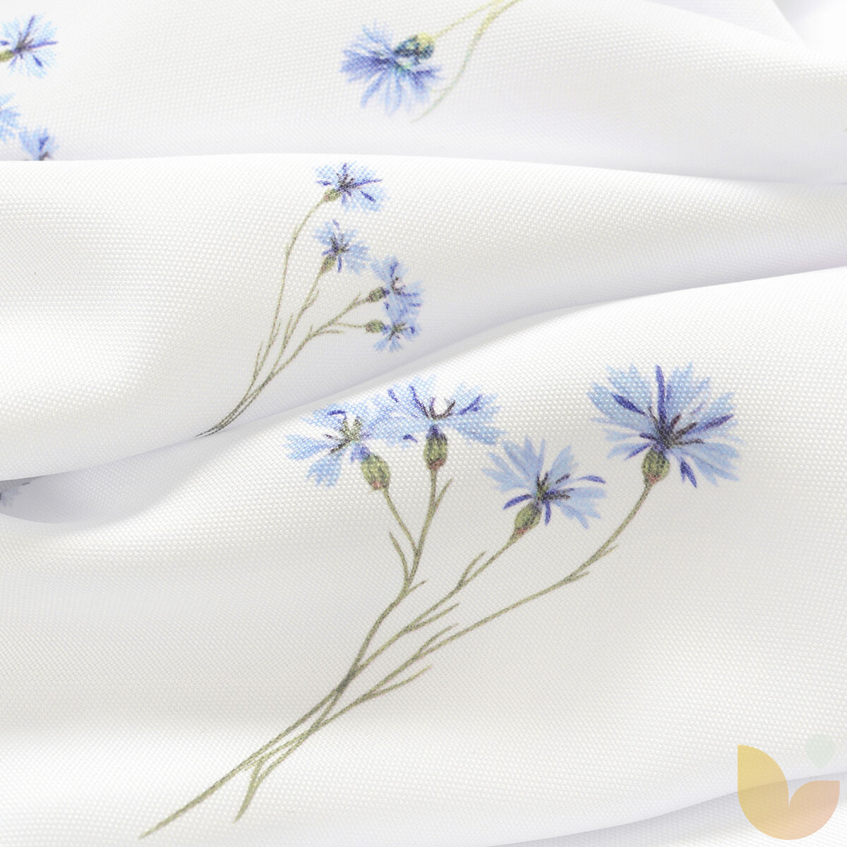 Tischdecke mit Motiv blauer Kornblumen ergänzt jeden Tisch auf natürliche Weise. Zarte Blumen unterstreichen die angenehmen Momente beim Essen mit Familie oder Freunden.
