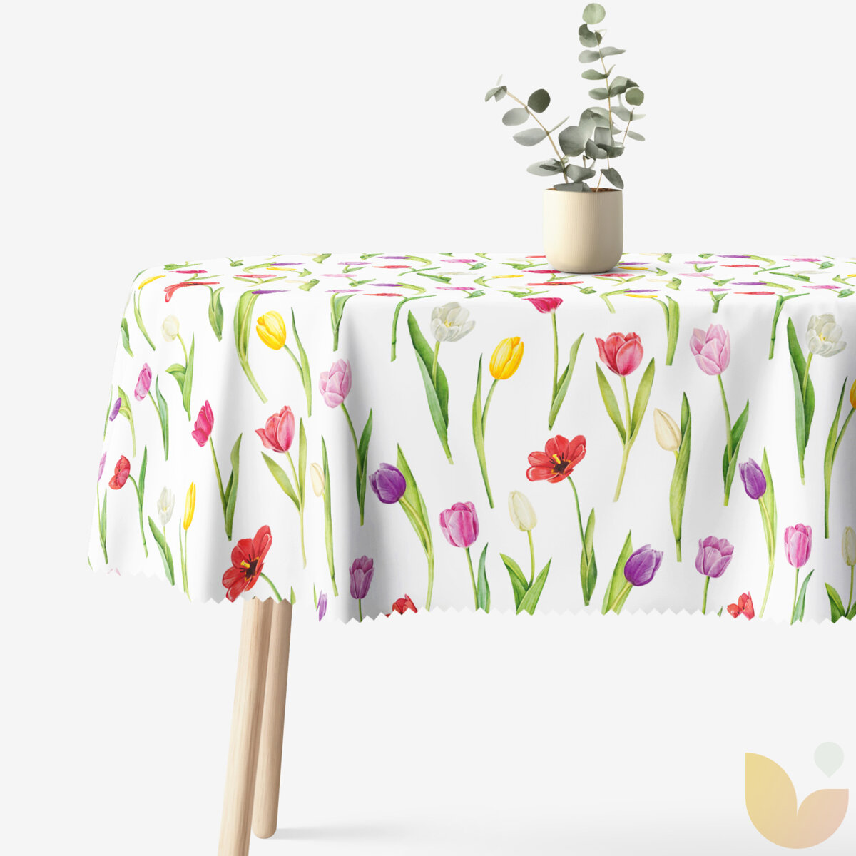 Ovale Tischdecke Teflon - Bunte Tulpen