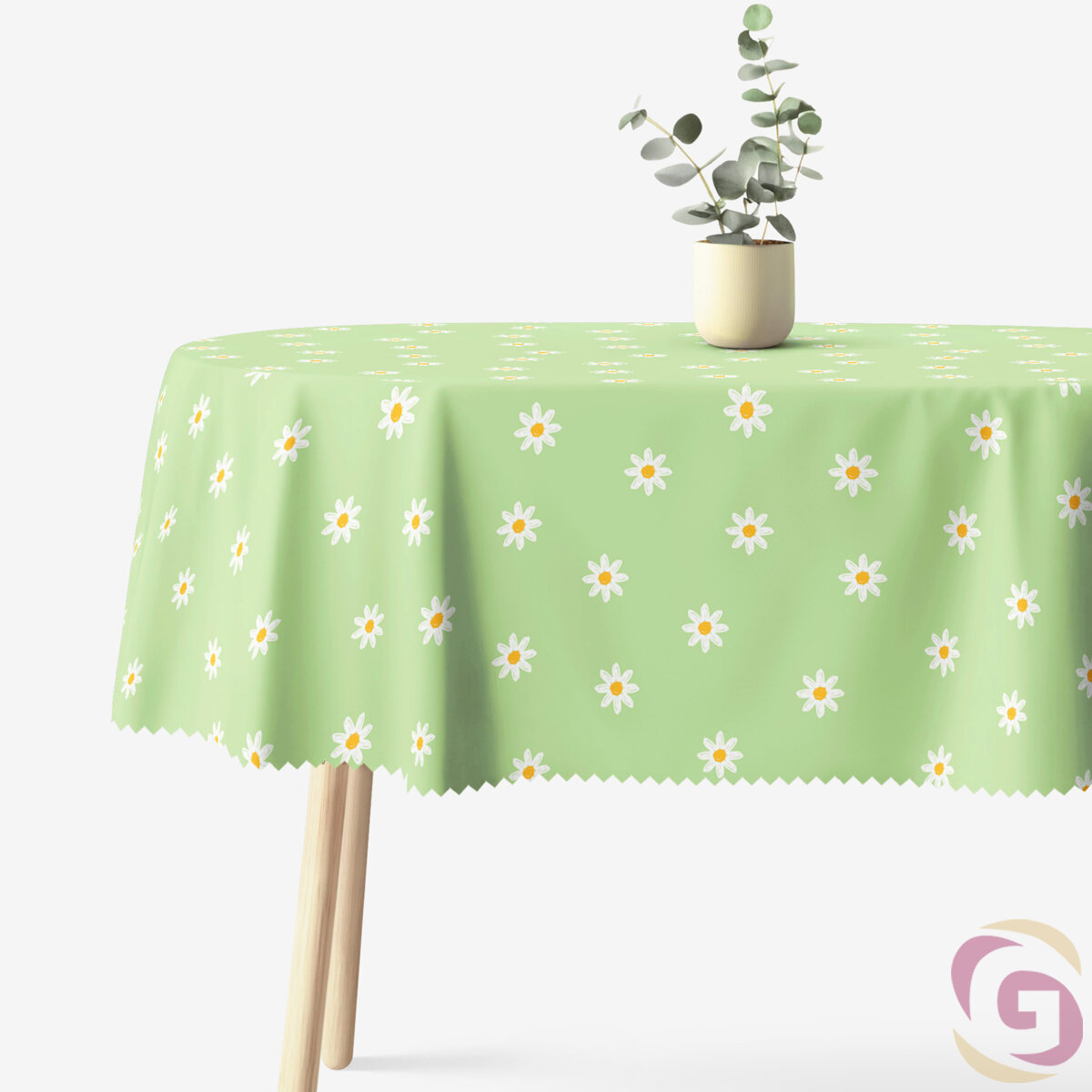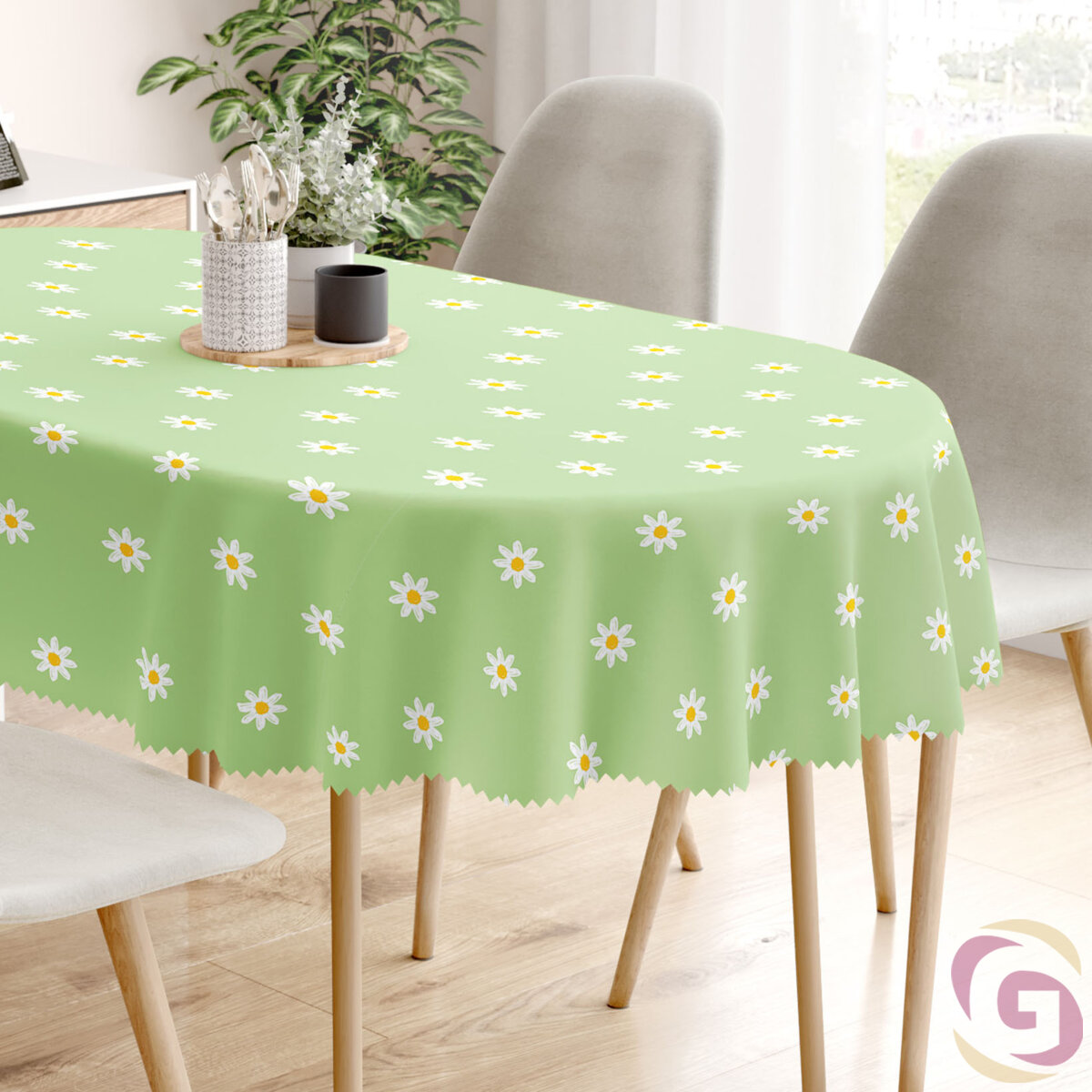 Ovale Tischdecke Teflon - Margeriten auf Grün