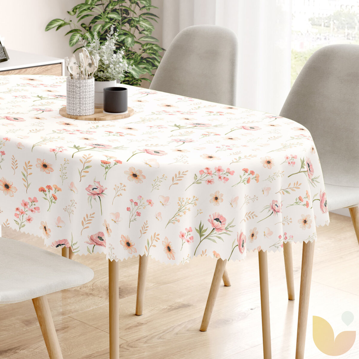 Ovale Tischdecke Teflon - Rosa Blümchen