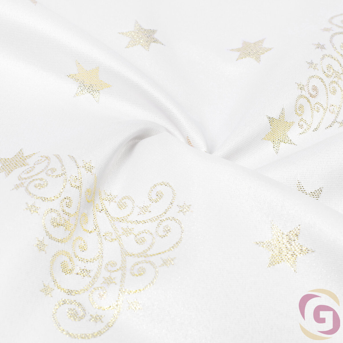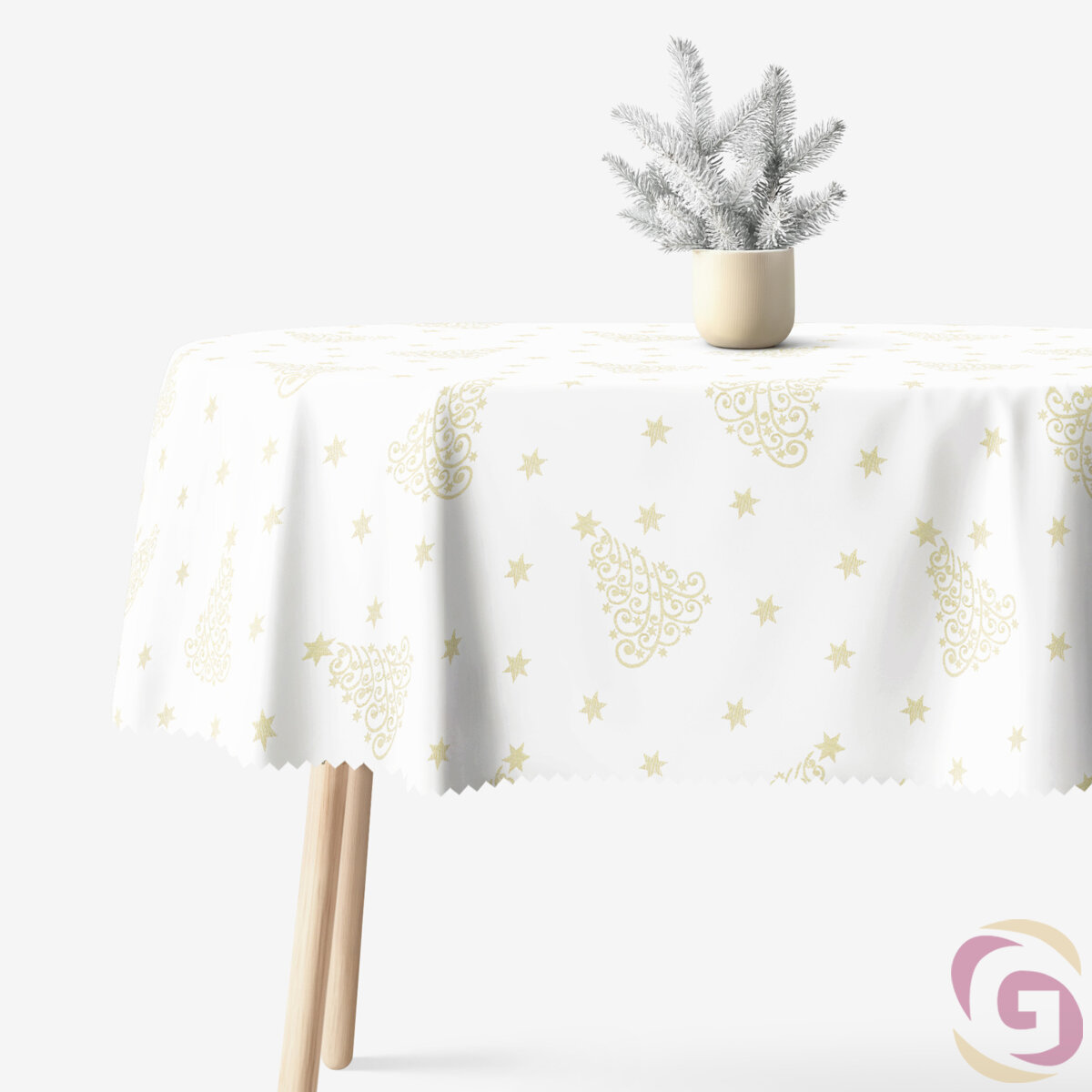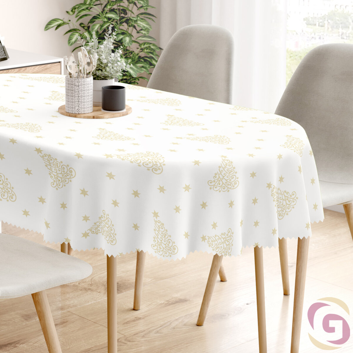 Ovale Weihnachts Teflon-Tischdecke - Goldene Tannenbäume und Sterne