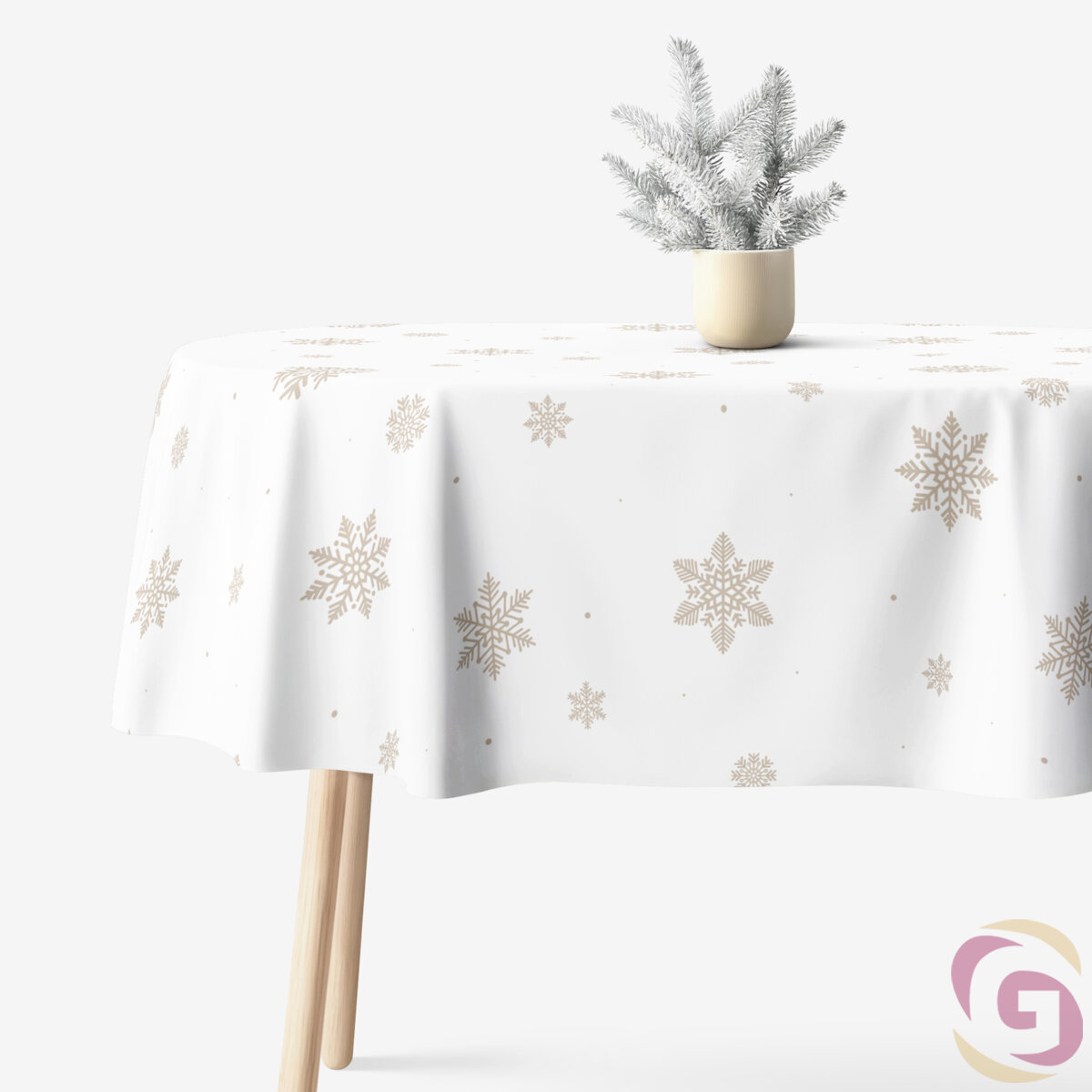 Runde Weihnachts-Tischdecke 100% Baumwolle - Schneeflocken auf Weiß