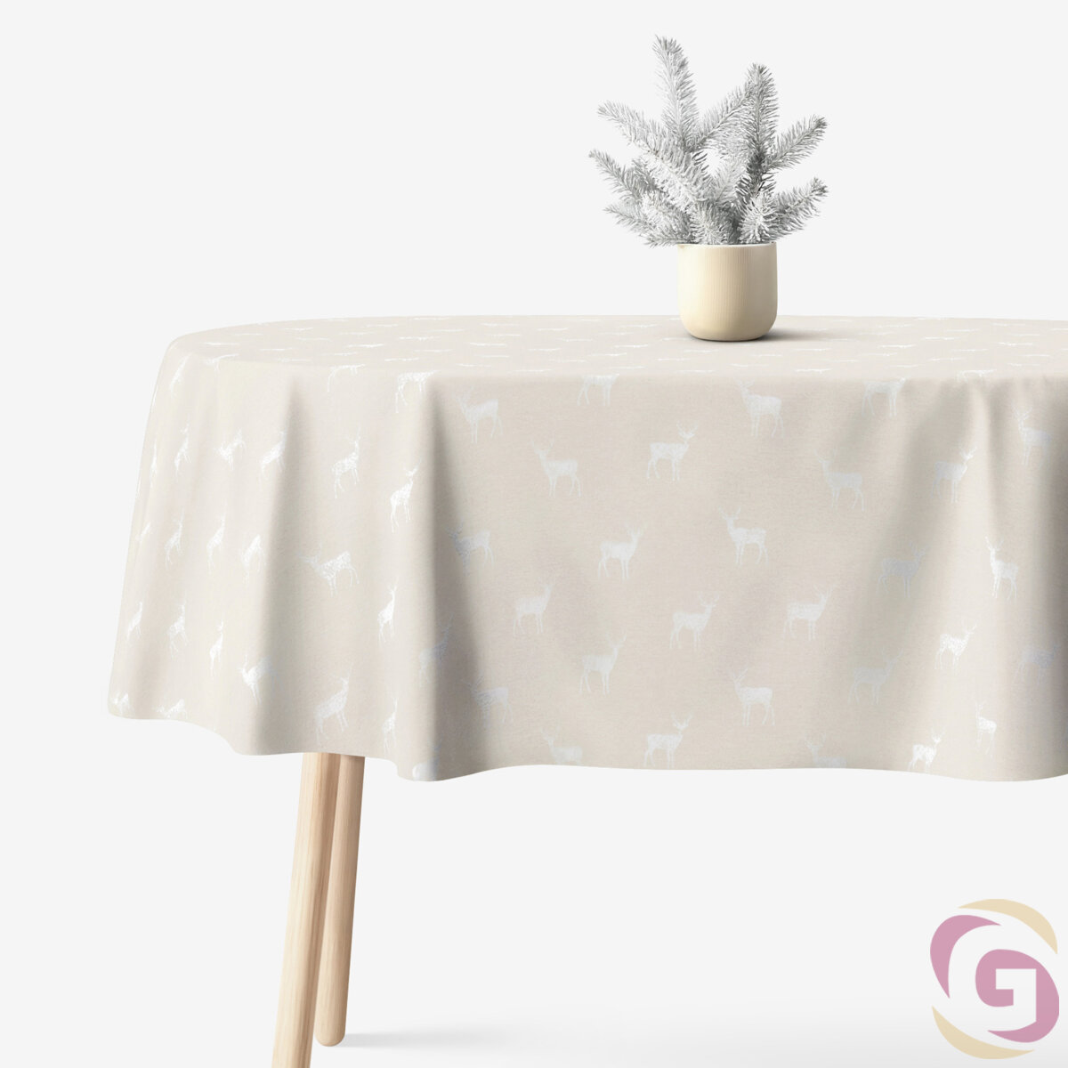 Ovale Weihnachts-Tischdecke Natura - Hirsche auf natürlichem